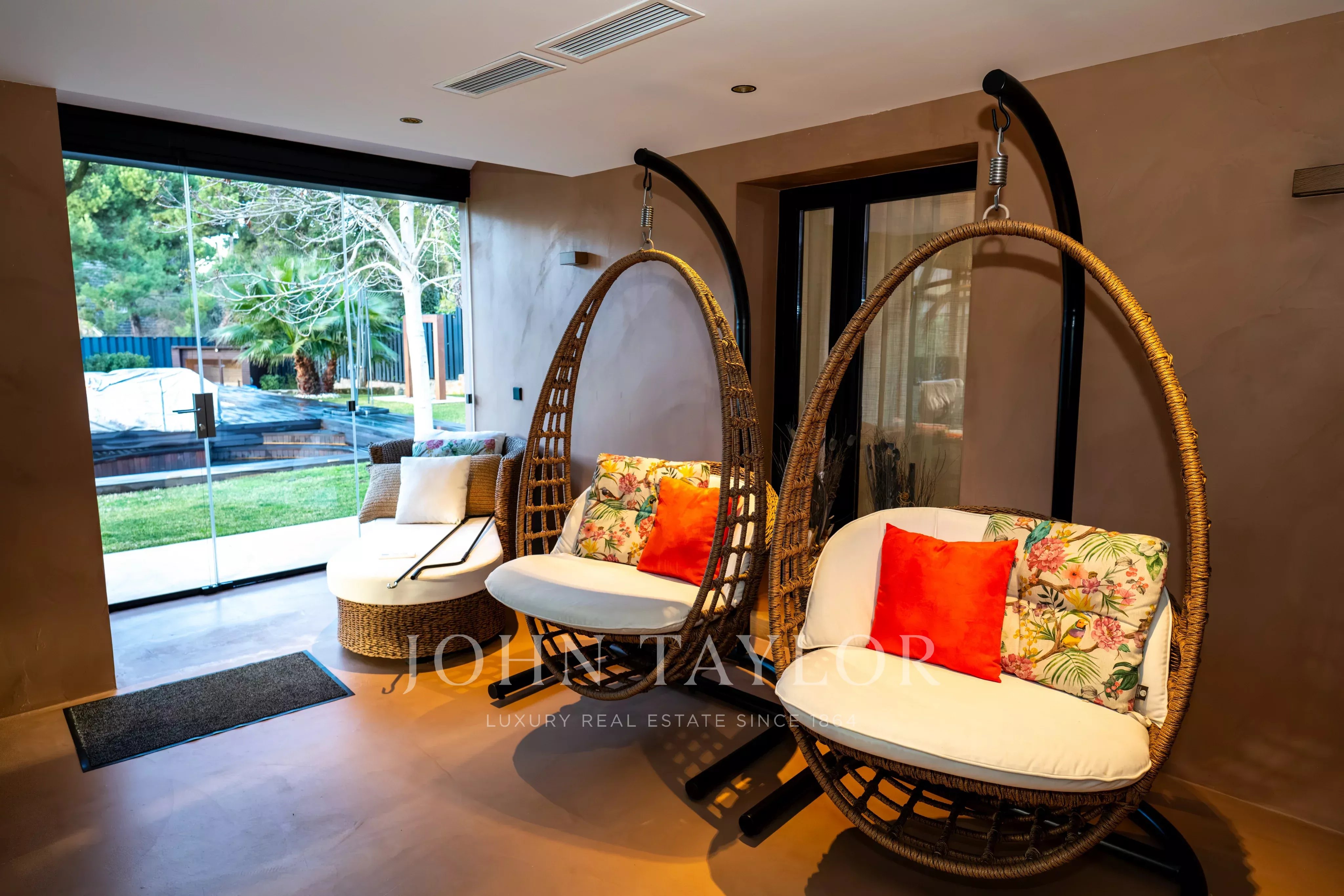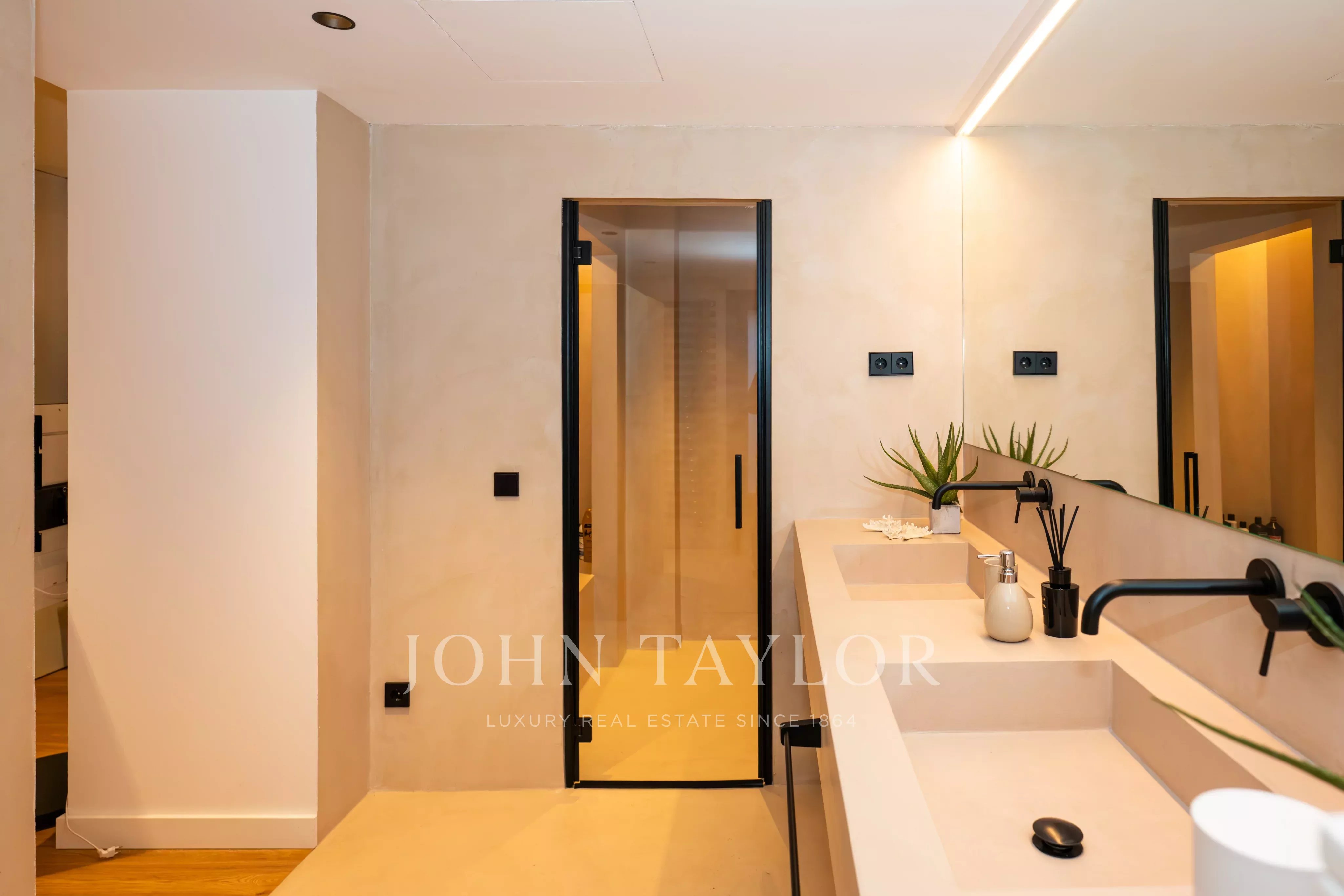 Die Immobilie bietet mehrere Schlafzimmer, teilweise mit eigenem Bad, sowie ein Arbeitszimmer, einen Personalbereich und weitere vielseitig nutzbare Räume. Ganzjähriger Komfort ist dank Heizung und Klimaanlage in allen Räumen gewährleistet.