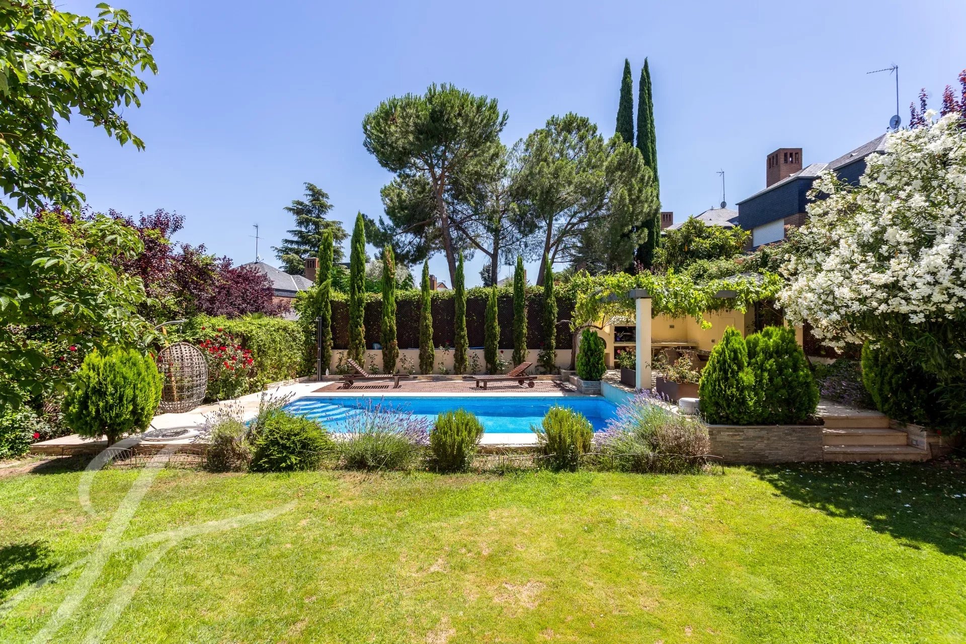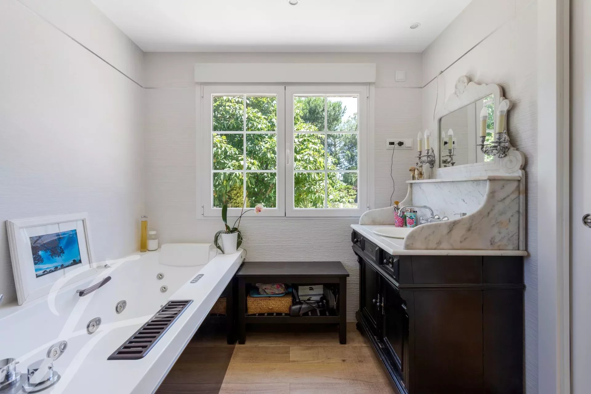 Außergewöhnliche freistehende Villa komplett renoviert von 456 m² mit sieben Zimmern oder Schlafzimmern gebaut. Grundstück von 634 m² mit schön gepflegten Garten mit Bäumen, Schwimmbad, Pavillon, Grill, Außenofen, Gartenhaus, Hauswirtschaftsraum und Holzschuppen.