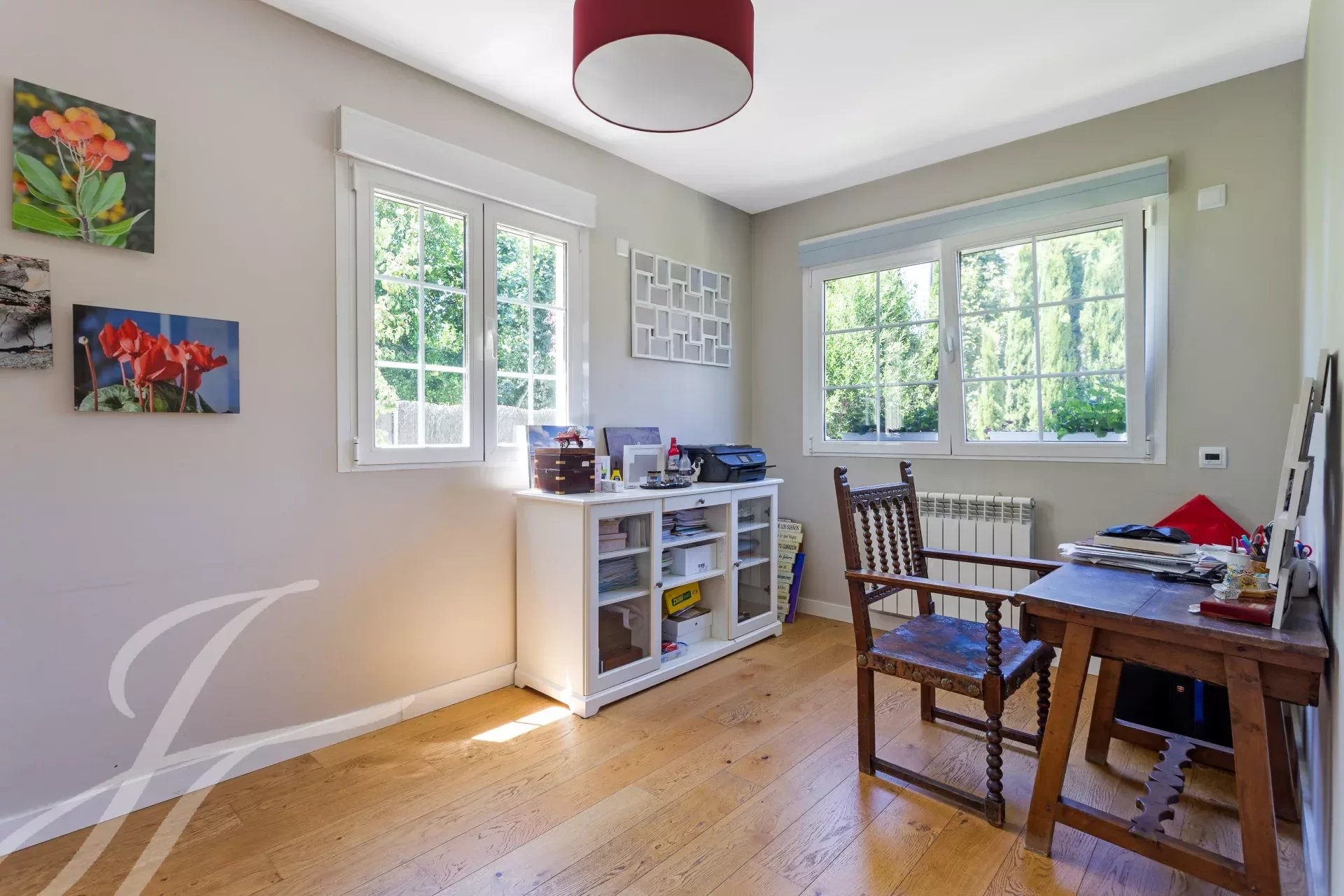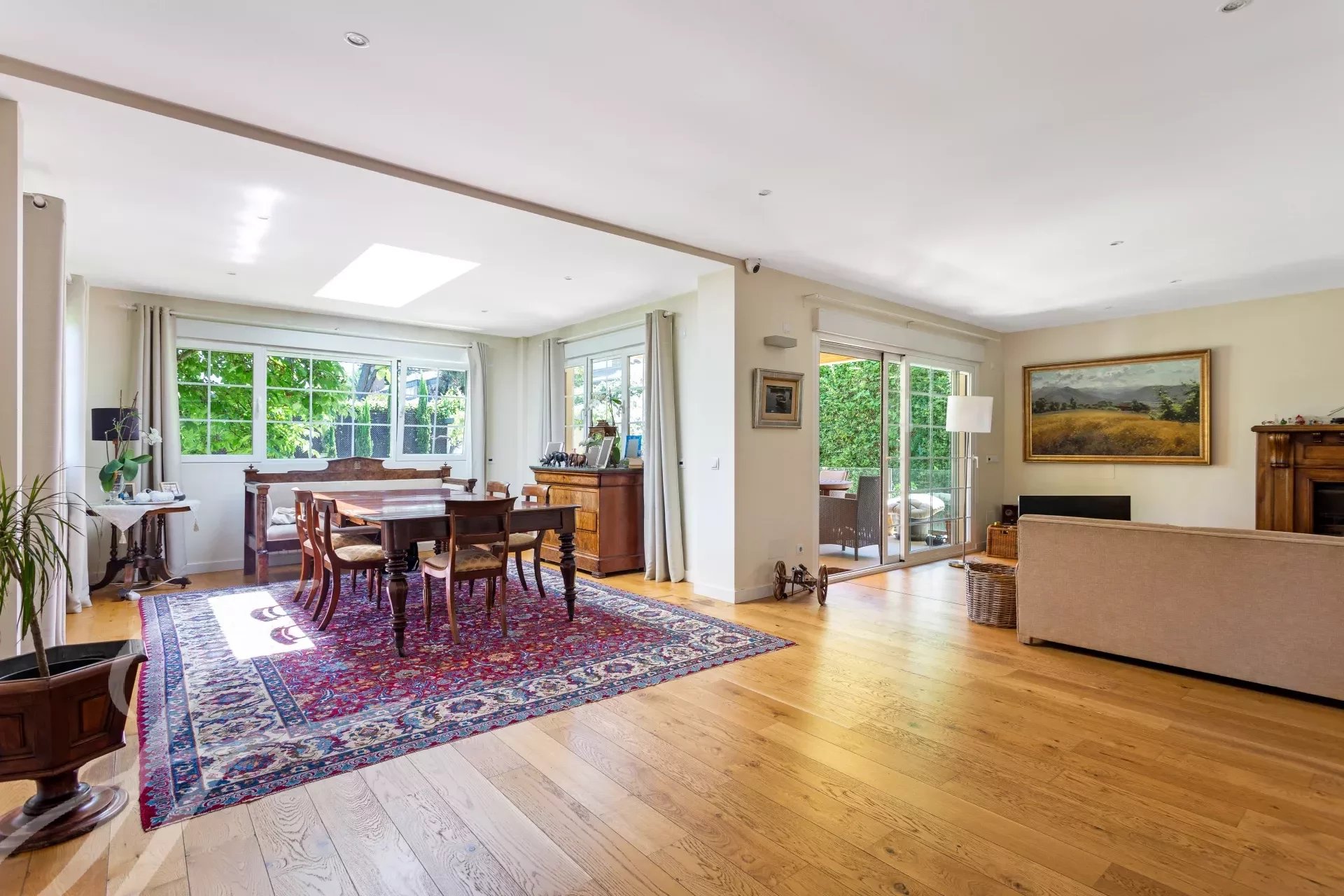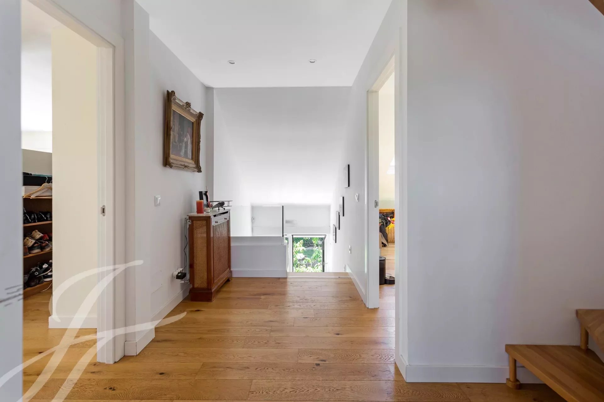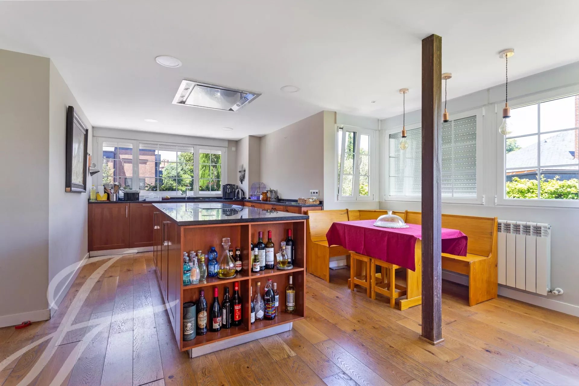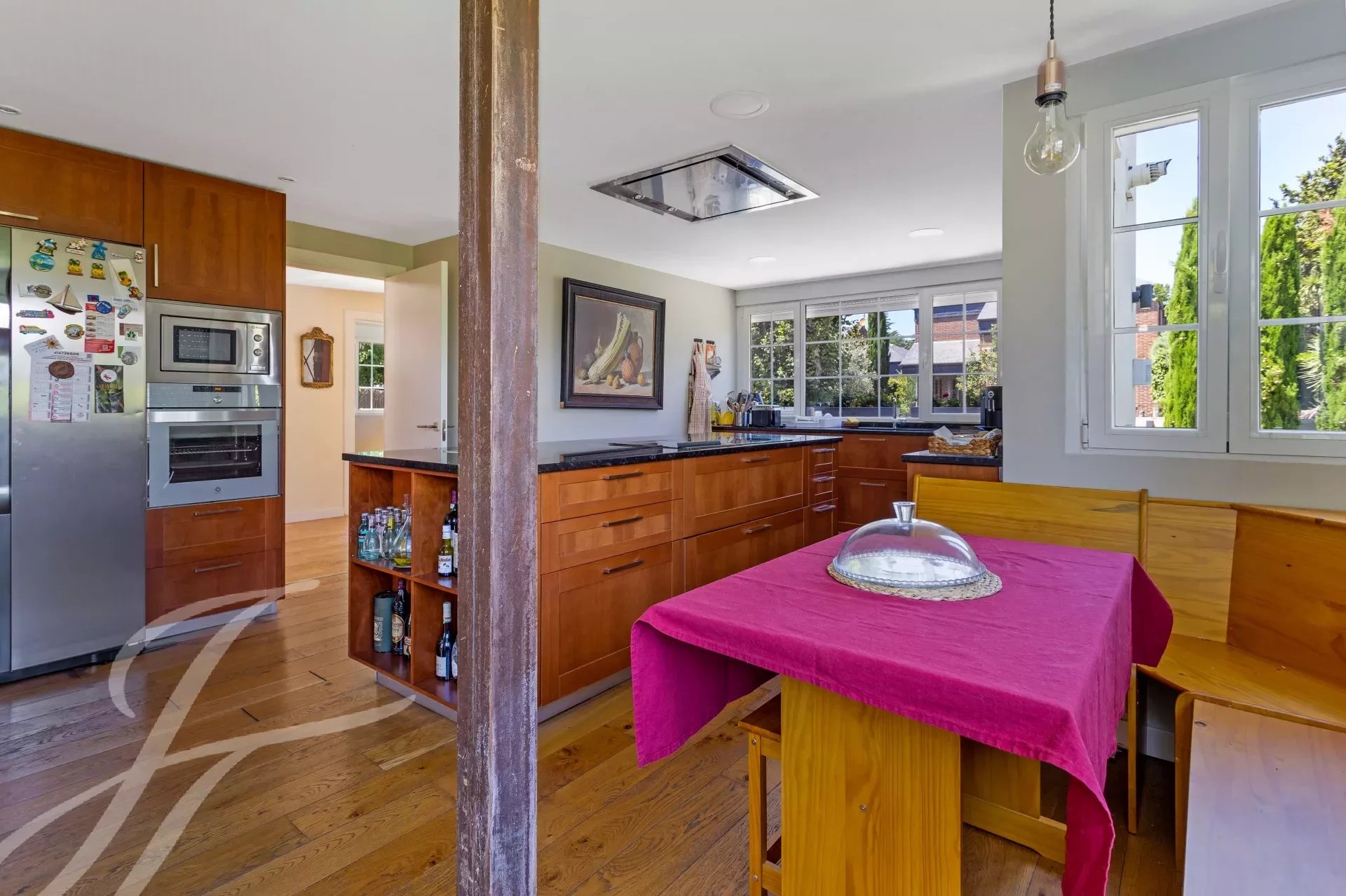 Auf der Hauptebene gibt es eine große Eingangshalle, die sich zum Wohn- und Esszimmer hin öffnet, mit Zugang zum schönen und großen Garten durch die Veranda. Es gibt auch ein Büro, eine Küche mit Bürobereich und ein Gäste-WC. Wohnzimmer mit Kamin und Esszimmer verbunden mit der modernen und renovierten Küche.