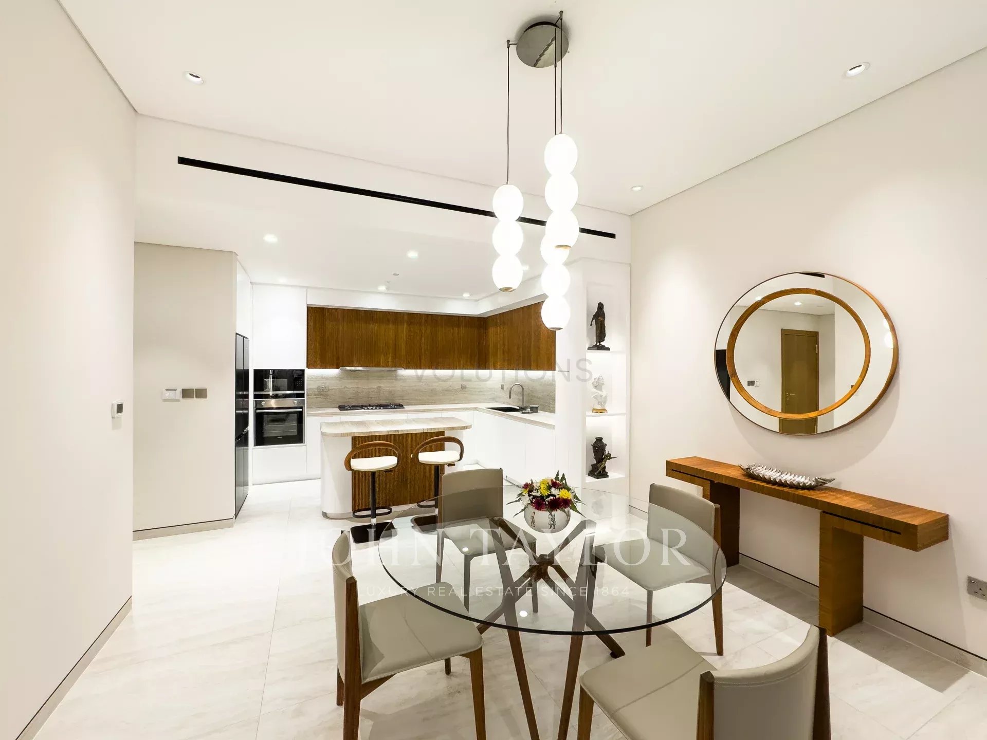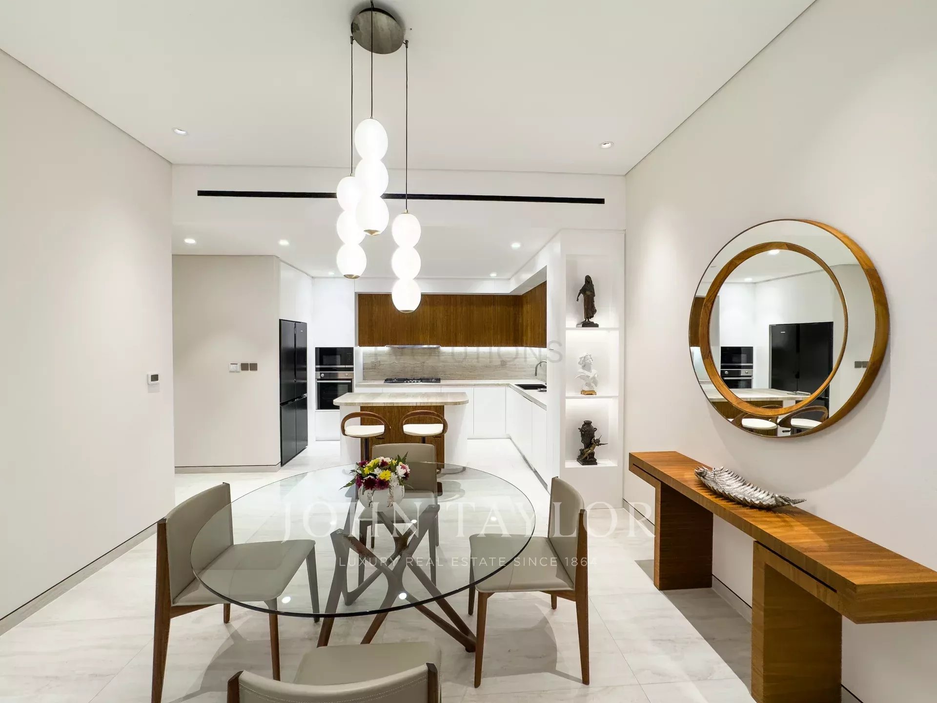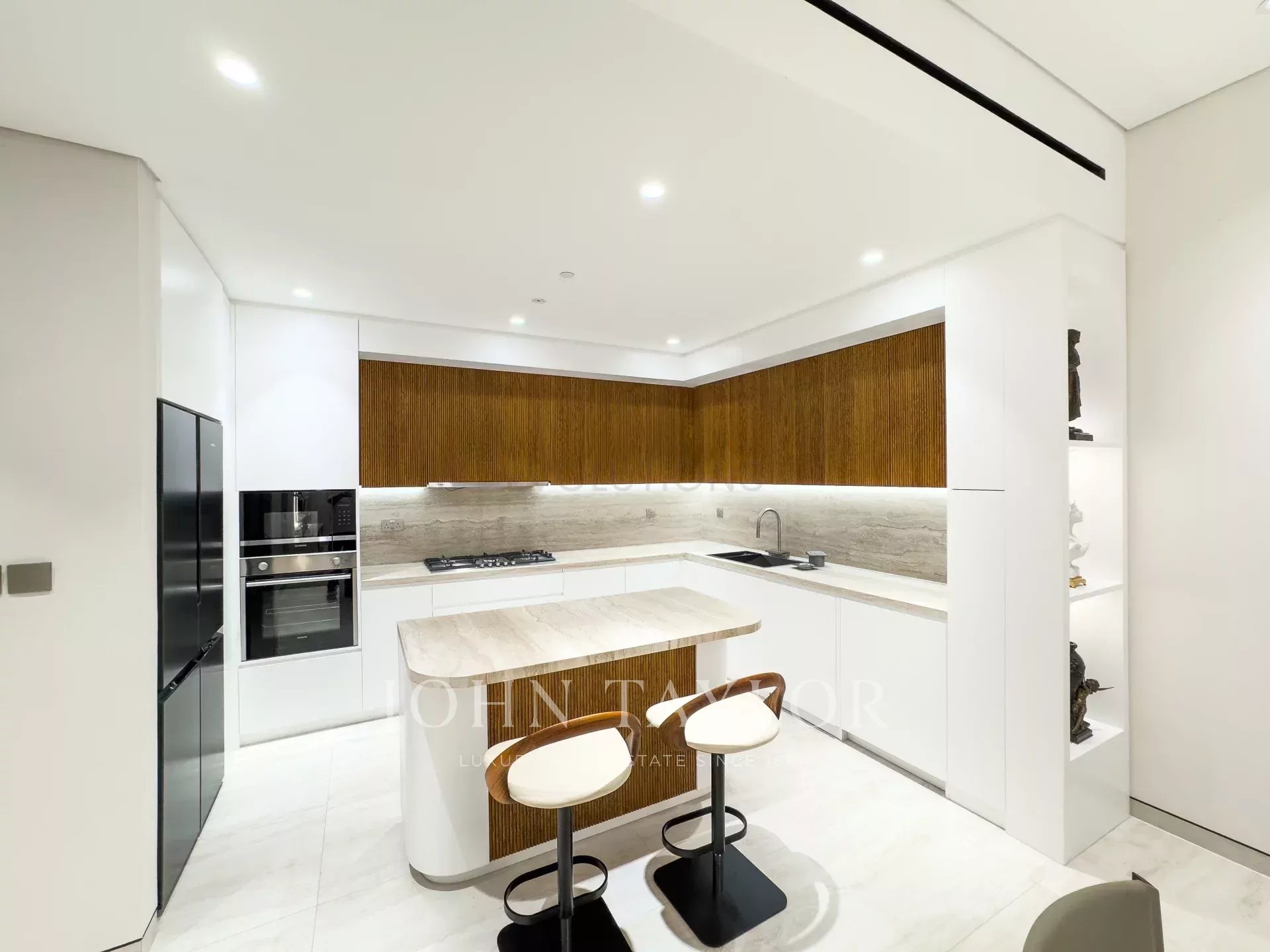 Diese weitläufige Residenz ist sowohl für das Leben mit der Familie als auch für anspruchsvolle Unterhaltung konzipiert. Die Wohnung erstreckt sich über einen großzügigen Grundriss und verfügt über raumhohe Fenster, die den Raum mit natürlichem Licht durchfluten und einen Panoramablick auf die umliegenden Seen, die Skyline und das üppige Grün bieten.