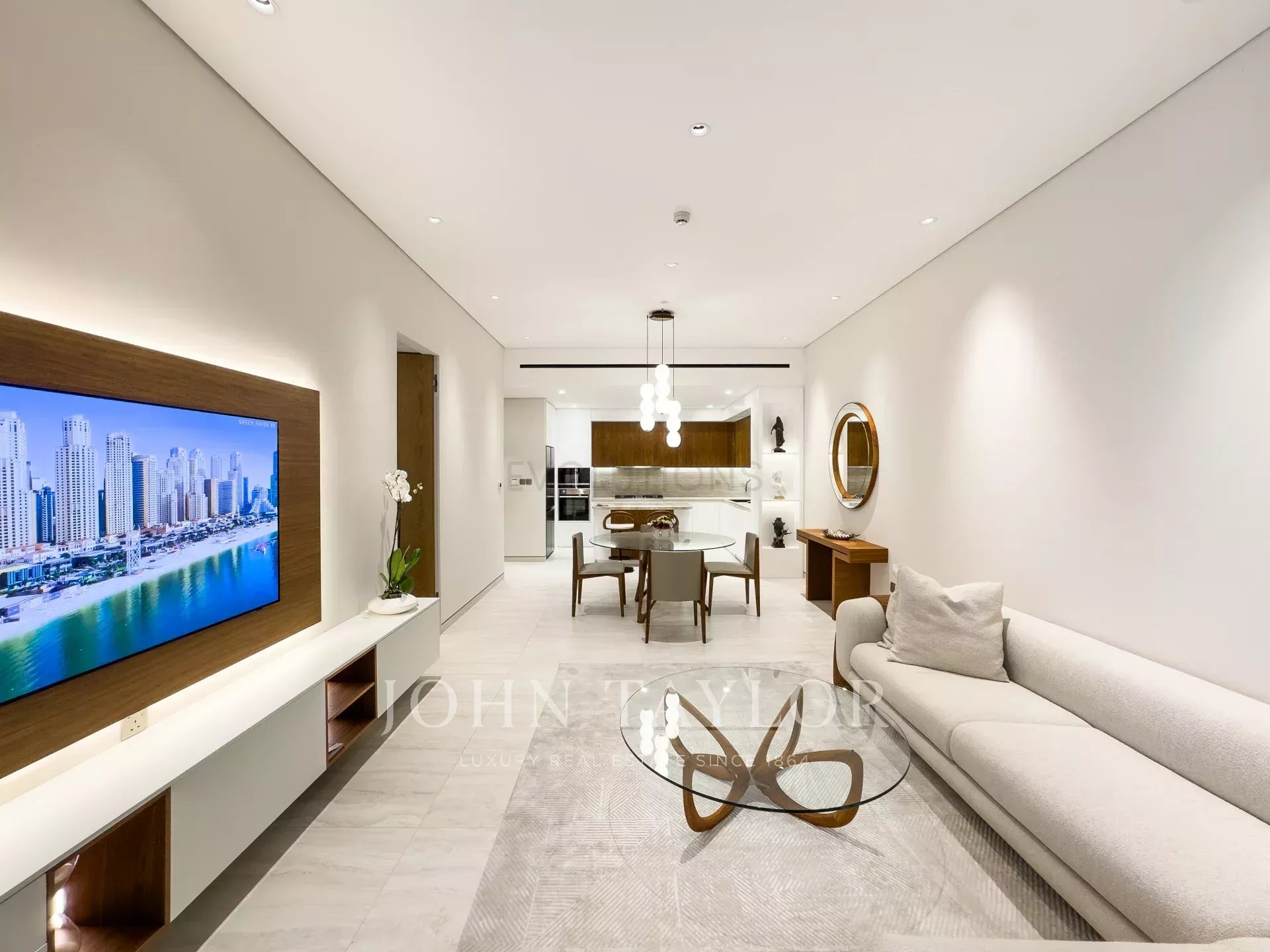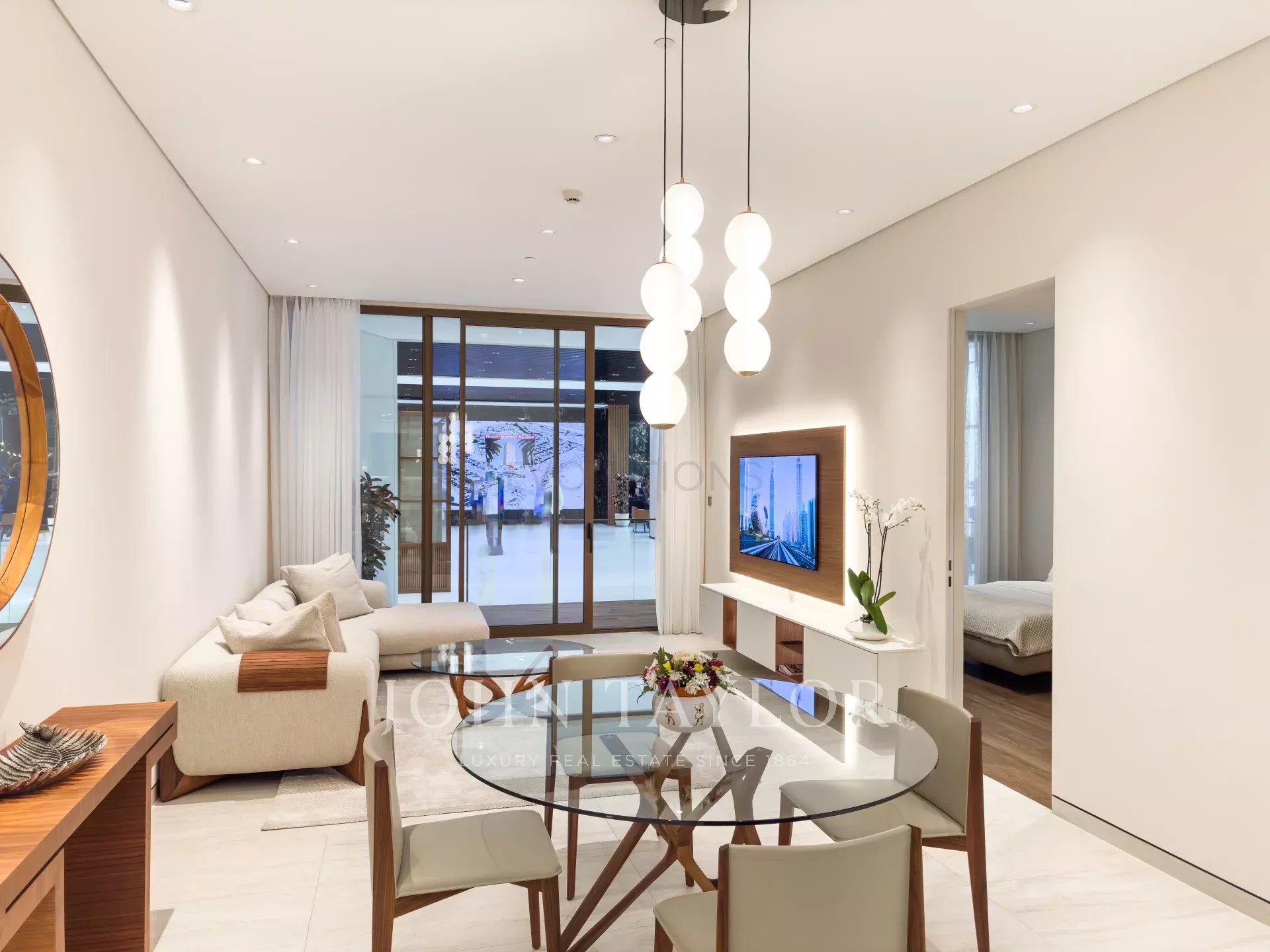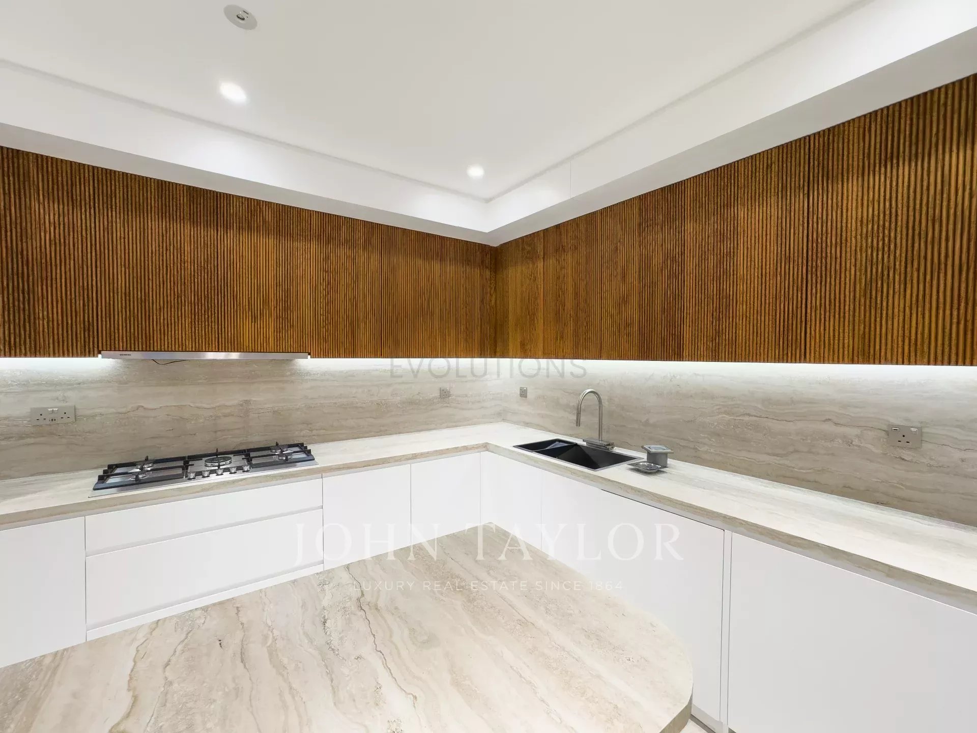 Diese weitläufige Residenz ist sowohl für das Leben mit der Familie als auch für anspruchsvolle Unterhaltung konzipiert. Die Wohnung erstreckt sich über einen großzügigen Grundriss und verfügt über raumhohe Fenster, die den Raum mit natürlichem Licht durchfluten und einen Panoramablick auf die umliegenden Seen, die Skyline und das üppige Grün bieten.