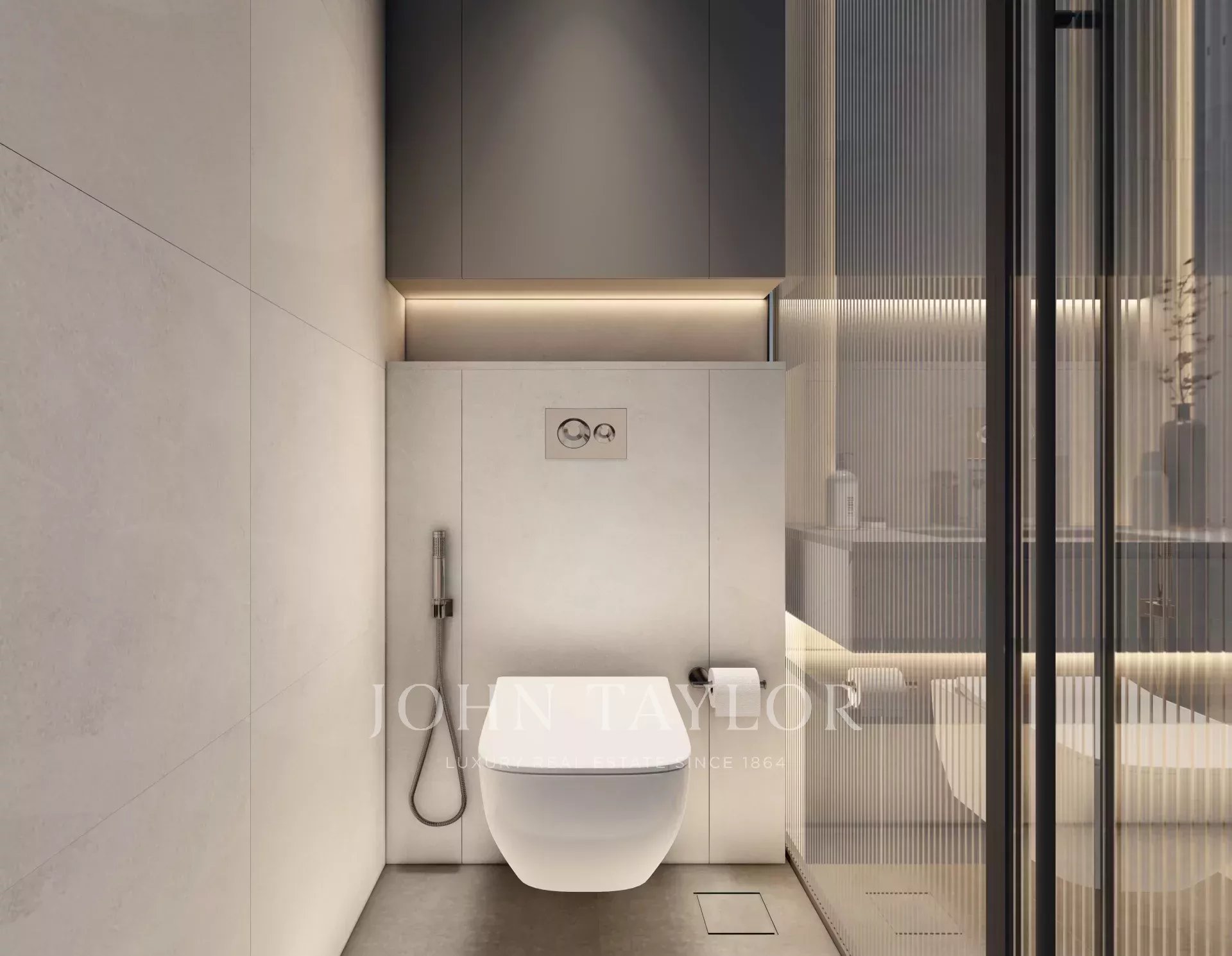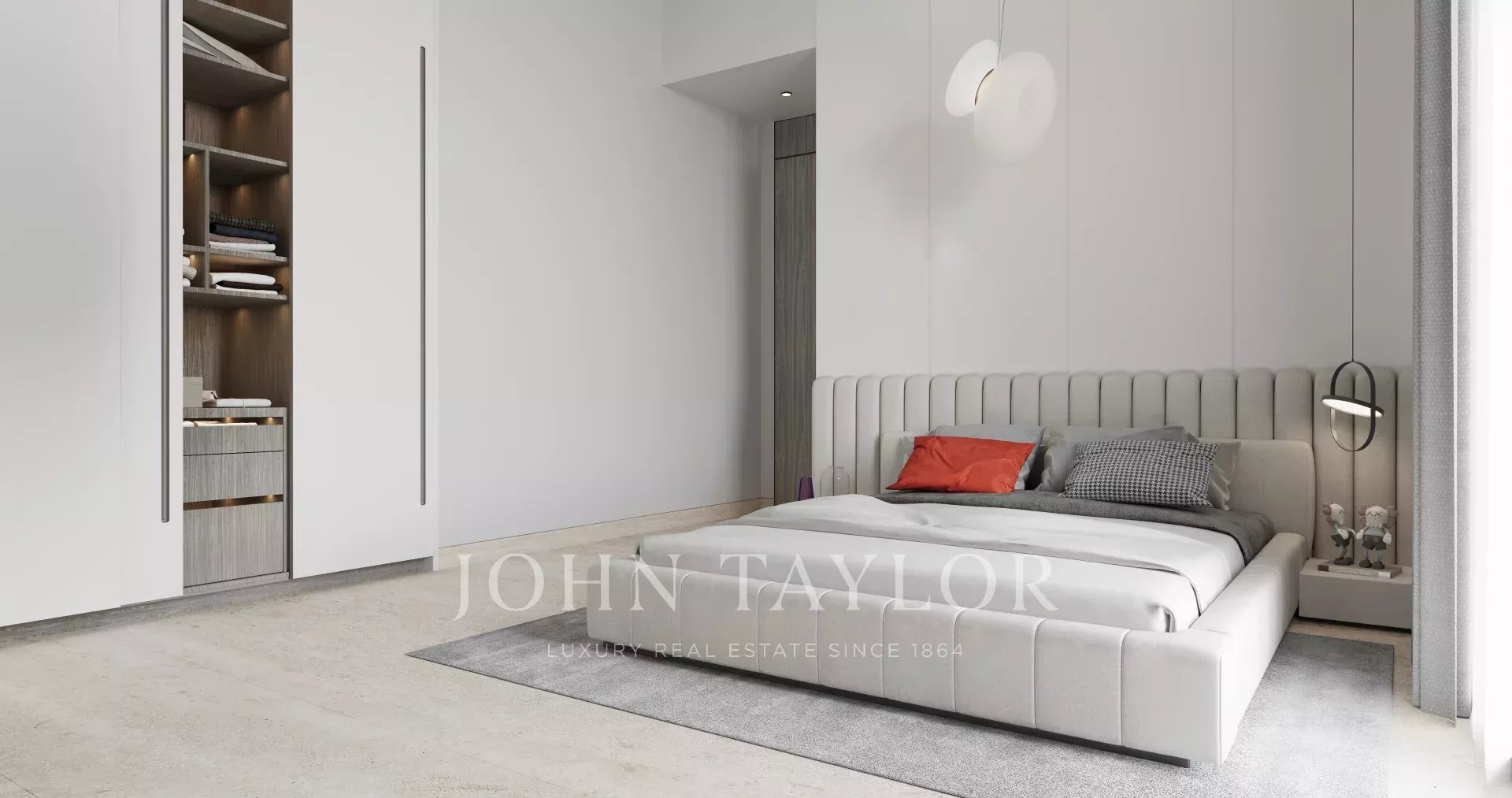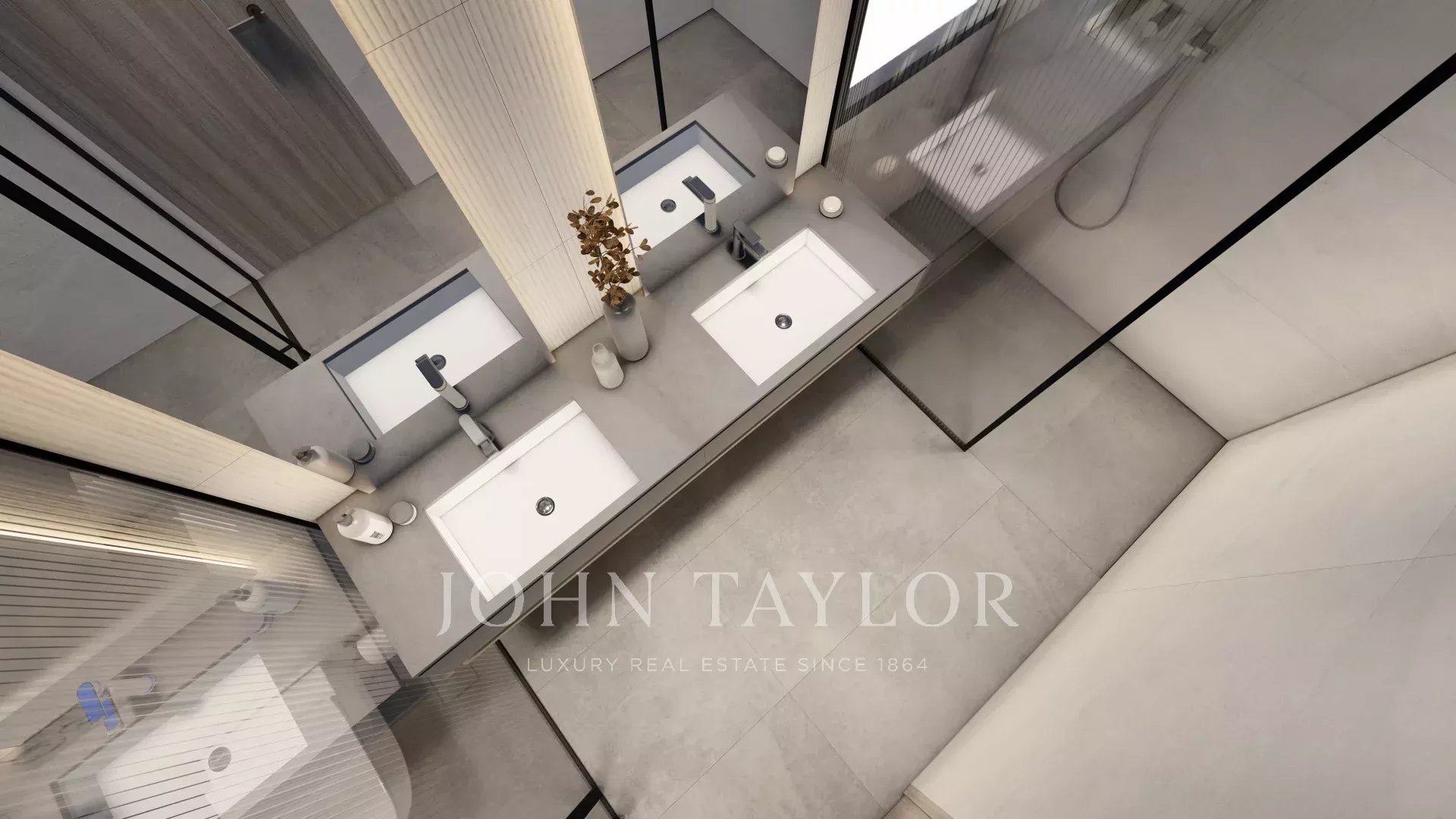 2 geräumige Schlafzimmer: Das Hauptschlafzimmer verfügt über ein eigenes Bad und einen begehbaren Kleiderschrank, während das zweite Schlafzimmer reichlich Platz bietet und einen einfachen Zugang zu einem stilvollen Gästebad bietet.