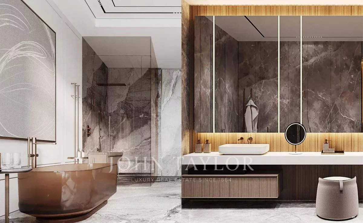 Palm Jumeirah ist bekannt für seine luxuriösen Wohngebiete, darunter hochwertige Villen, Stadthäuser und Apartmentkomplexe. Die Immobilien bieten einen atemberaubenden Blick auf das Meer und die Skyline von Dubai.