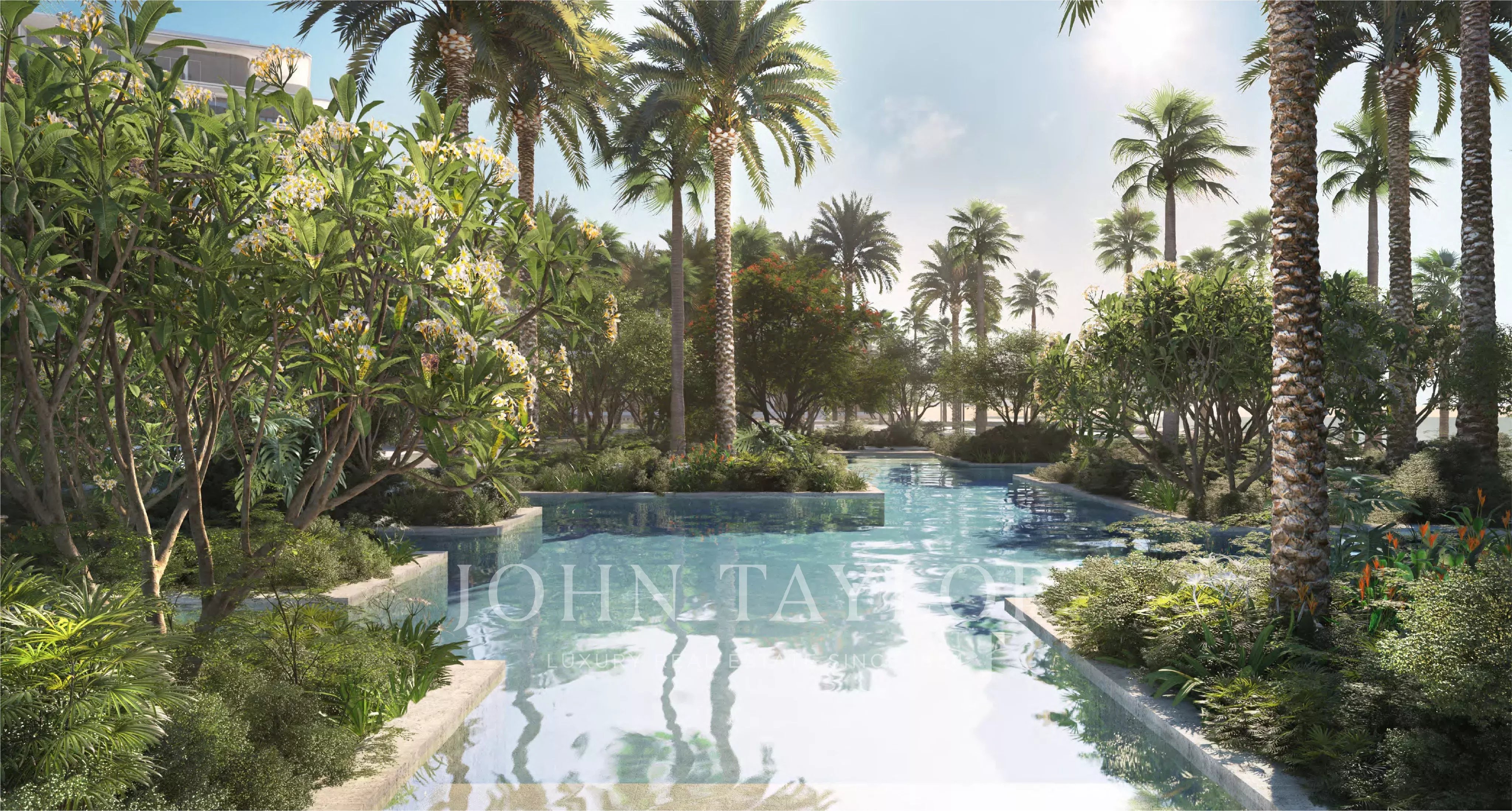 Die Eigentümerschaft beinhaltet den Zugang zu allen Annehmlichkeiten und Dienstleistungen des Hotels, von Wellness-Terminen bis hin zu privaten Mahlzeiten und täglicher Pflege. Auf der oberen Ebene bietet die Sunset Lounge auf 400 Quadratmetern ununterbrochene Sonnenuntergänge über Palm Jumeirah und einen Panoramablick über die Central Oasis. Die Lounge vereint Innen- und Außenbereiche, einschließlich einer Business-Lounge und einer erhöhten, grünen Terrasse, die einen besonderen Aussichtspunkt bietet.