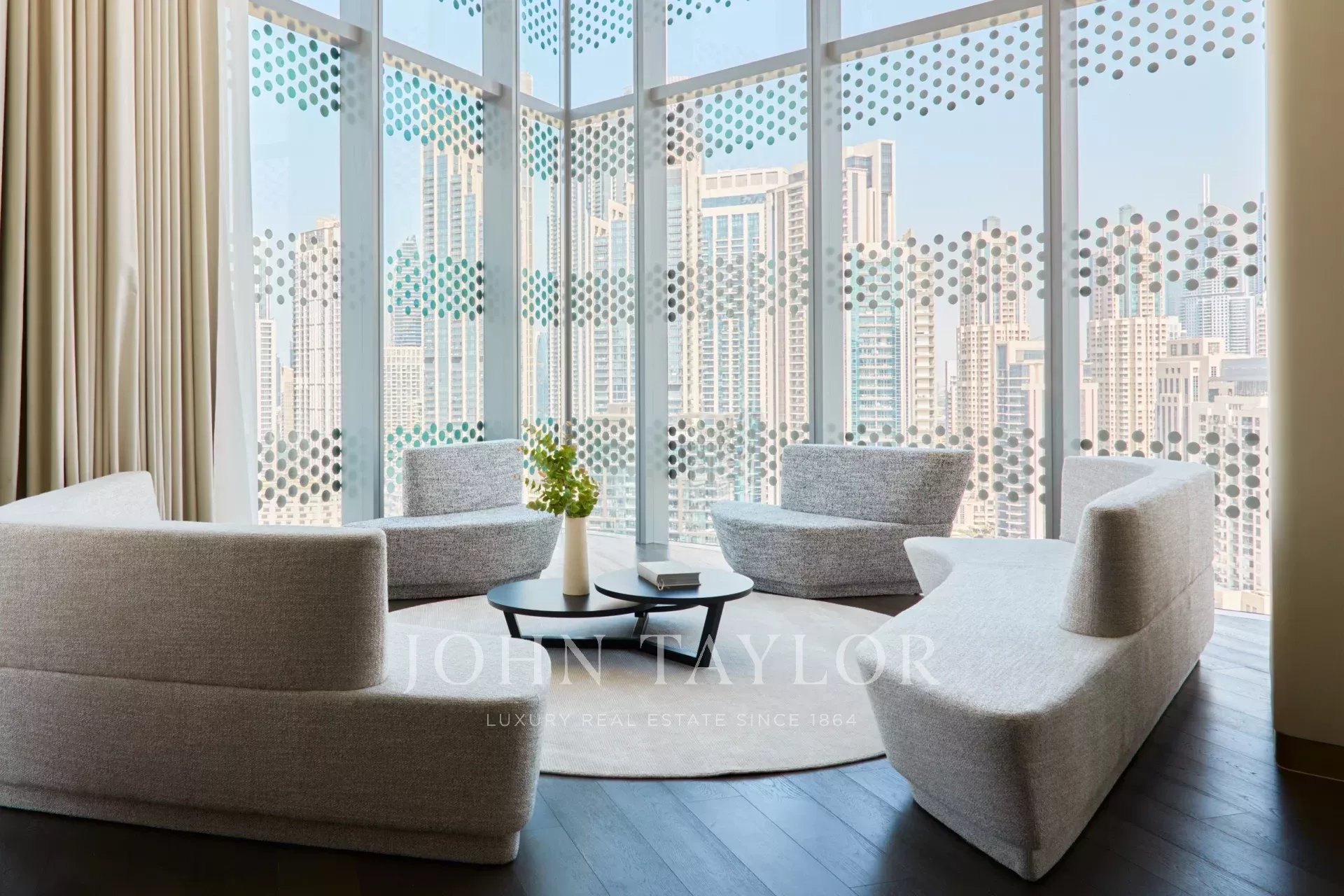 Panoramablick: Genießen Sie den atemberaubenden Blick auf den Burj Khalifa und das dynamische Stadtbild durch die raumhohen Fenster.