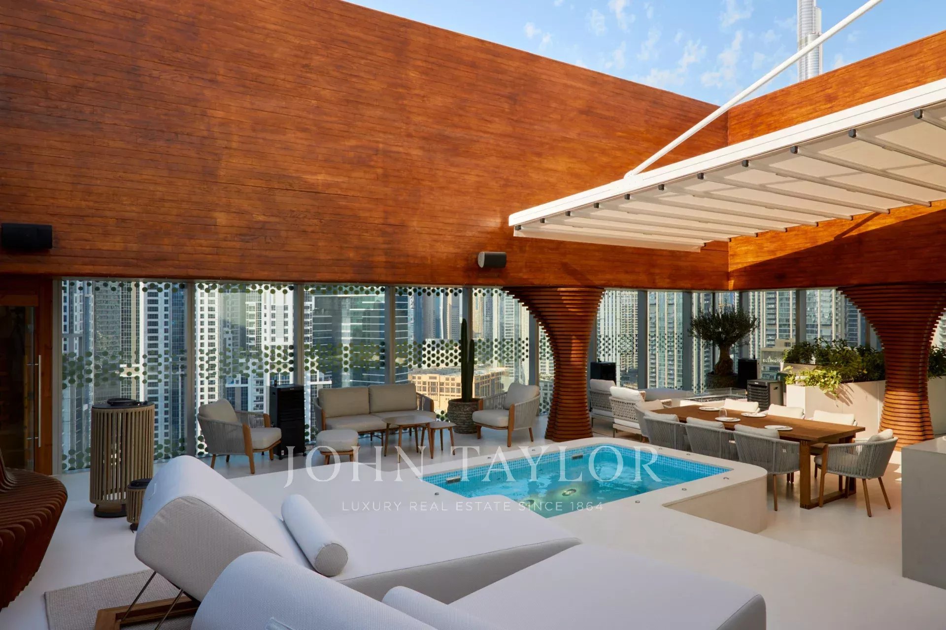 John Taylor Dubai präsentiert mit Stolz diese voll möblierte, vollständig modernisierte 3-Schlafzimmer-Triplex-Wohnung im legendären Opus Tower, einem von der legendären Zaha Hadid entworfenen Meisterwerk. Eingebettet in das Herz der Business Bay, bietet diese Residenz eine harmonische Mischung aus innovativem Design und moderner Eleganz.