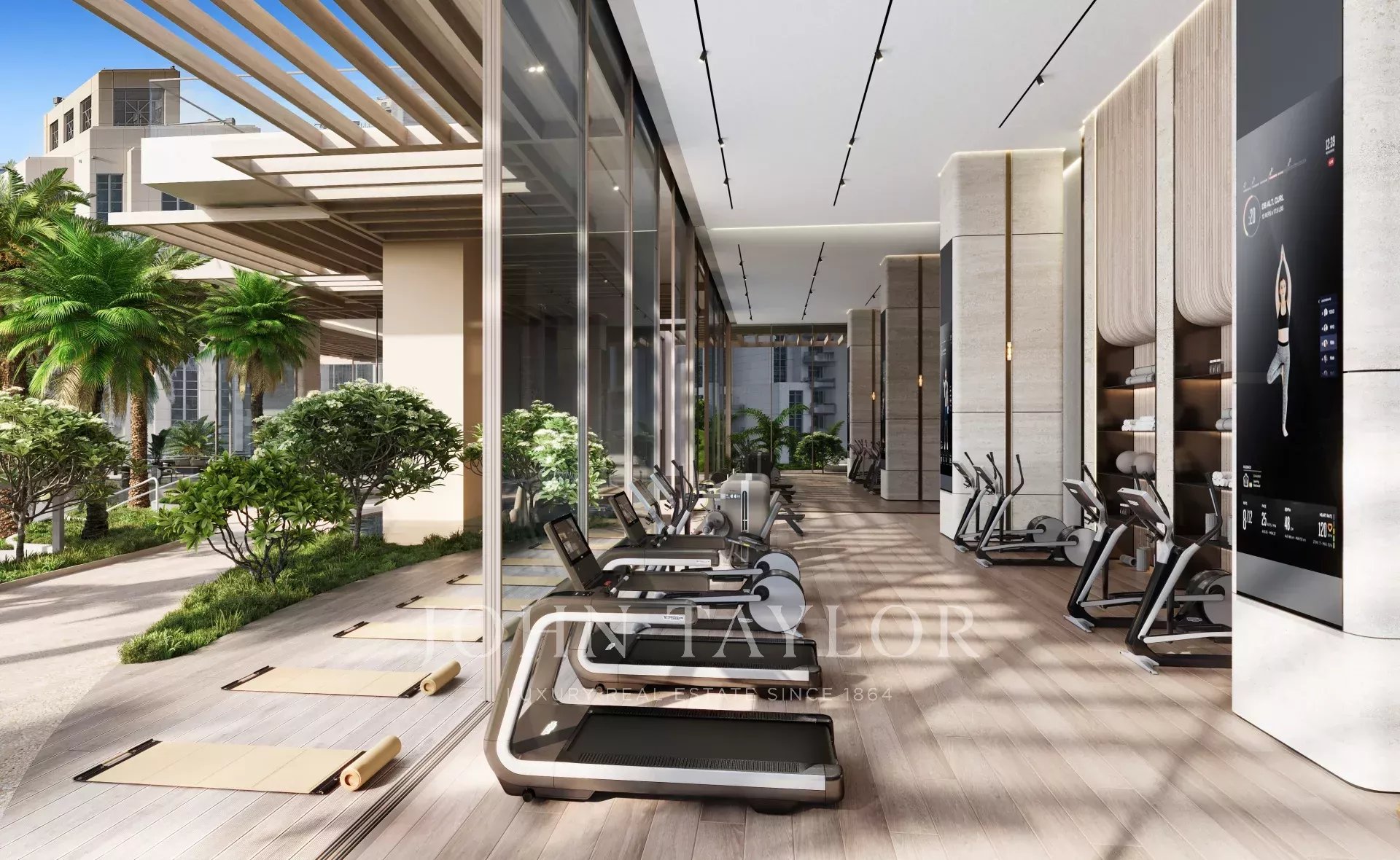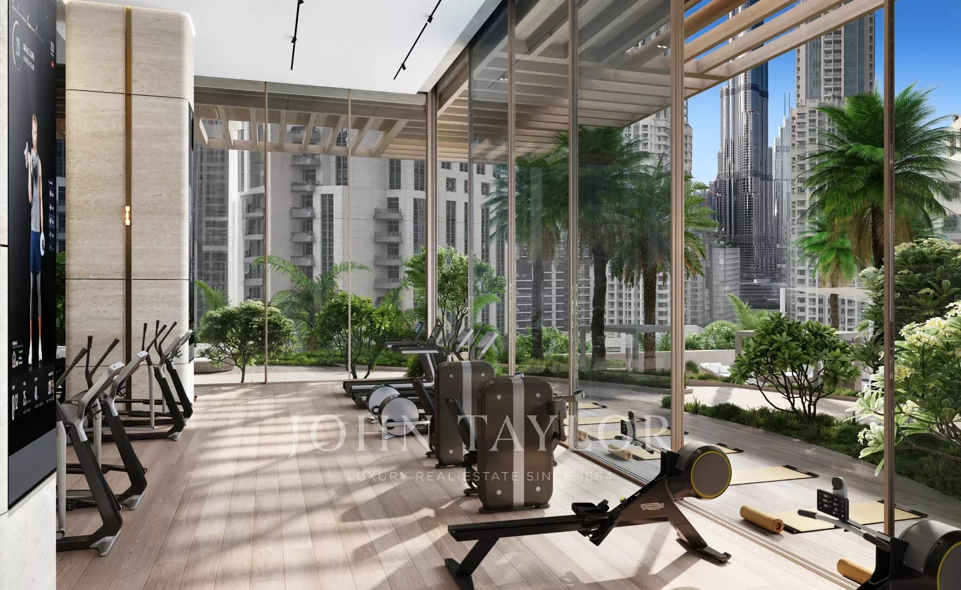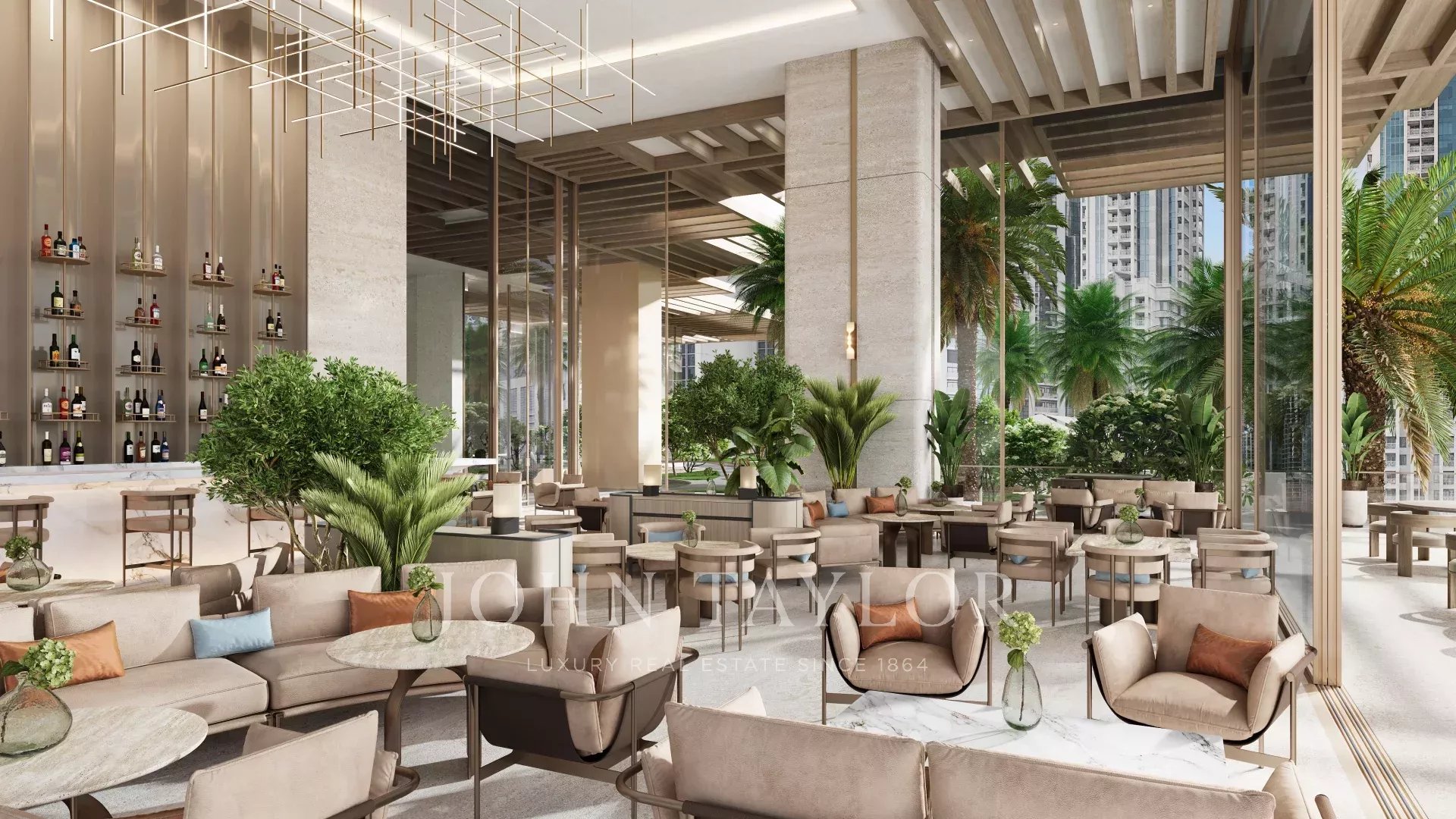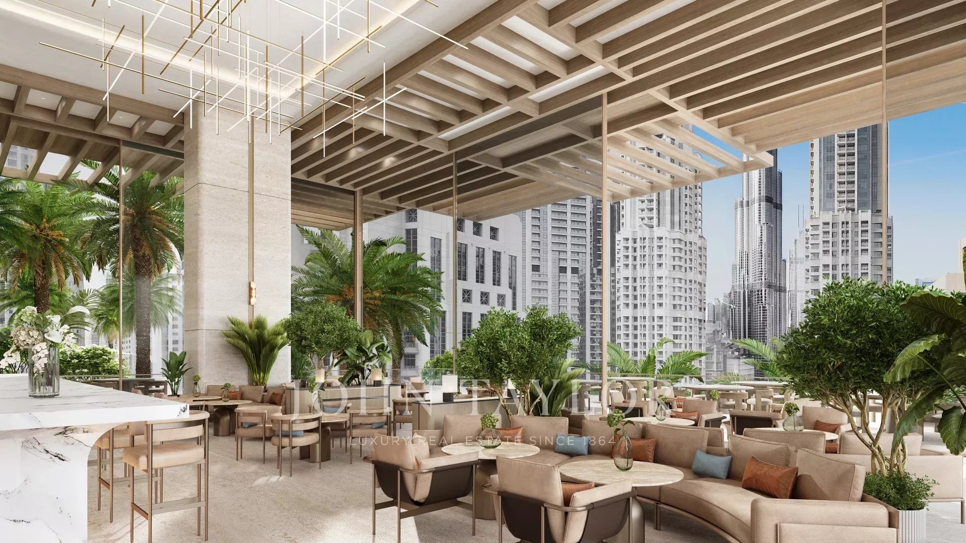 Zugang zu erstklassigen Annehmlichkeiten, darunter ein Infinity-Pool auf dem Dach, ein Spa, ein Fitnessstudio, ein Landschaftsgarten, ein Kinoraum und einzigartige Einrichtungen wie ein Golfsimulator und ein Yoga-Bereich.