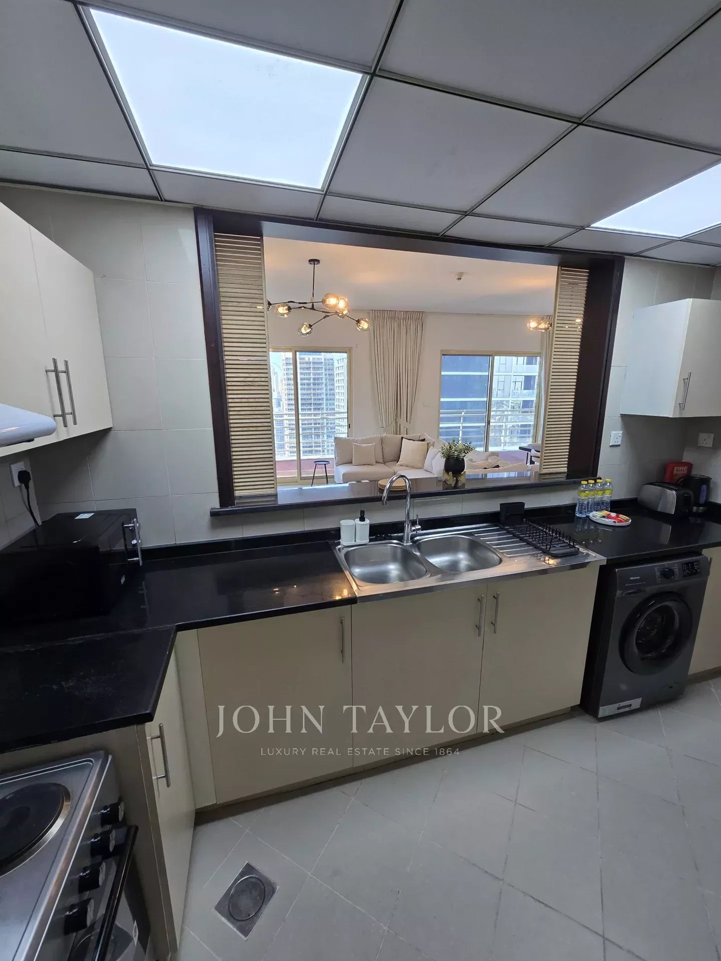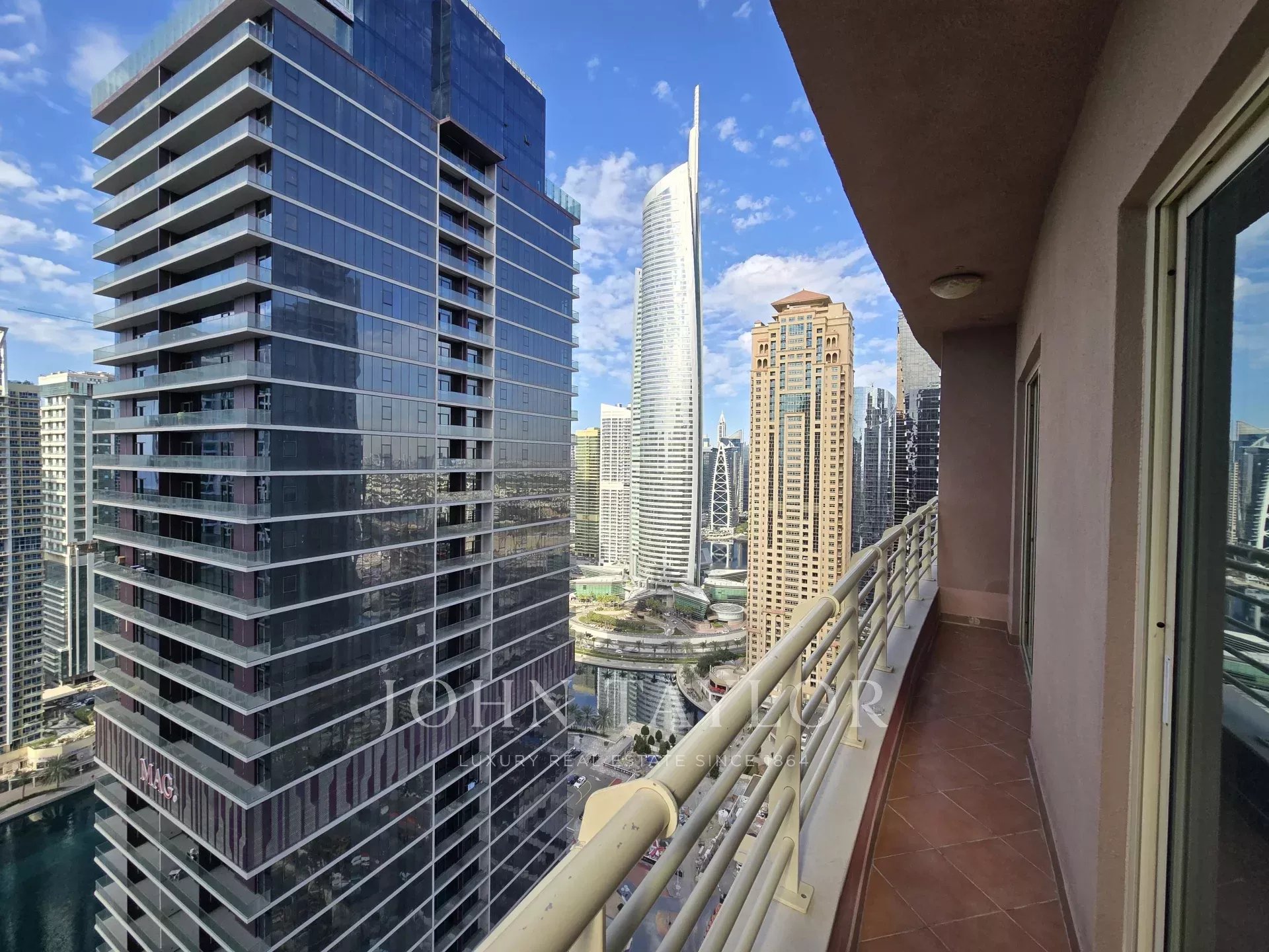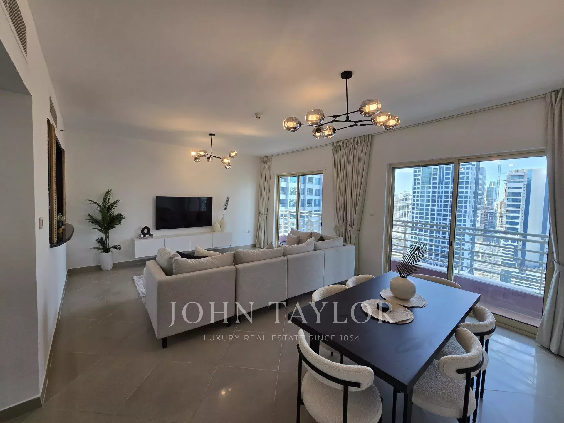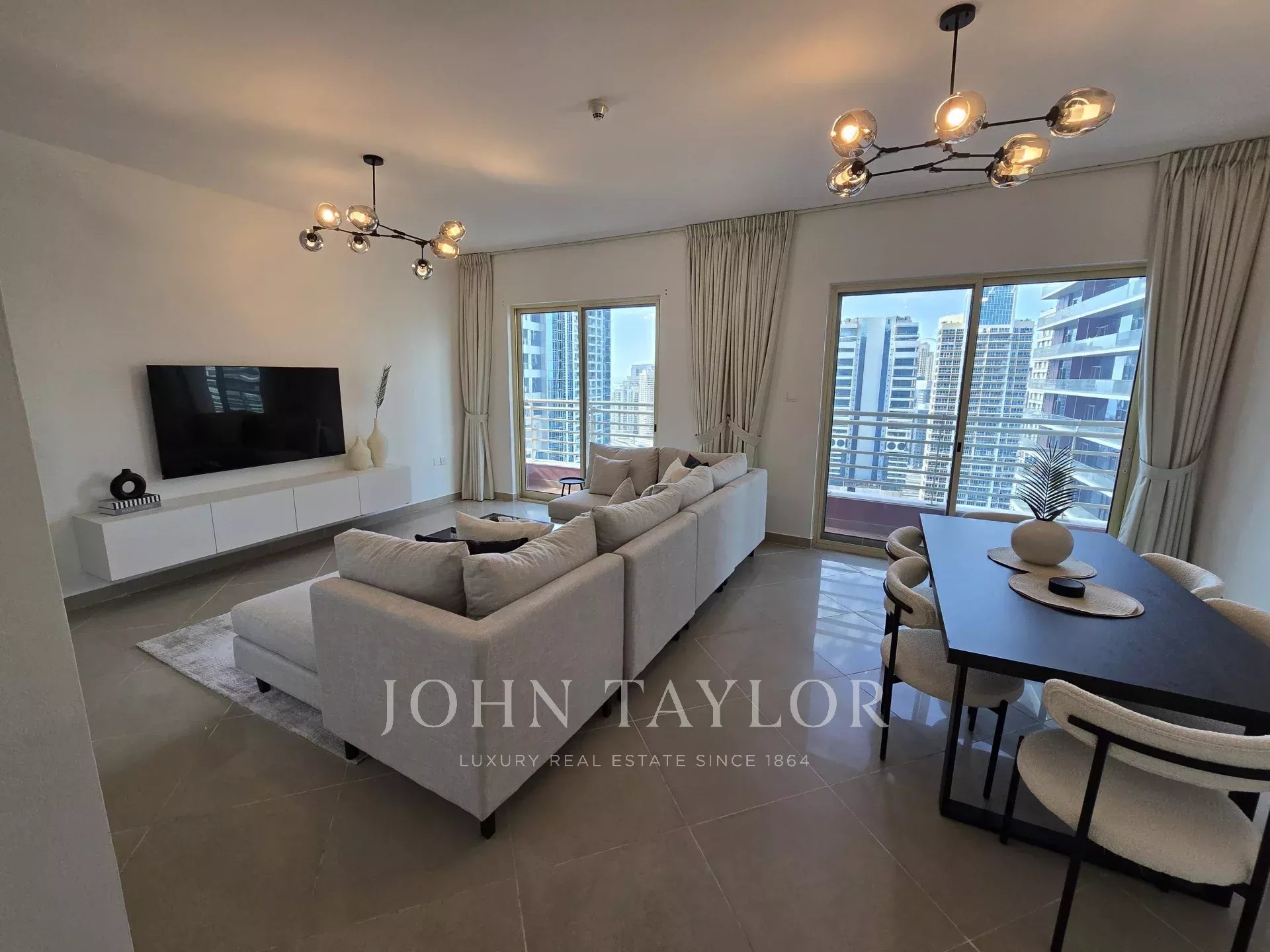 John Taylor Real Estate freut sich, diese wunderschön eingerichtete 2-Schlafzimmer-Wohnung mit Angestelltenzimmer im prestigeträchtigen Icon Tower 2 im Herzen von Jumeirah Lake Towers (JLT) anbieten zu können. Mit einer Fläche von 135,08 Quadratmetern bietet diese Wohnung eine perfekte Kombination aus Luxus, Platz und Komfort, ideal für Familien oder Berufstätige.