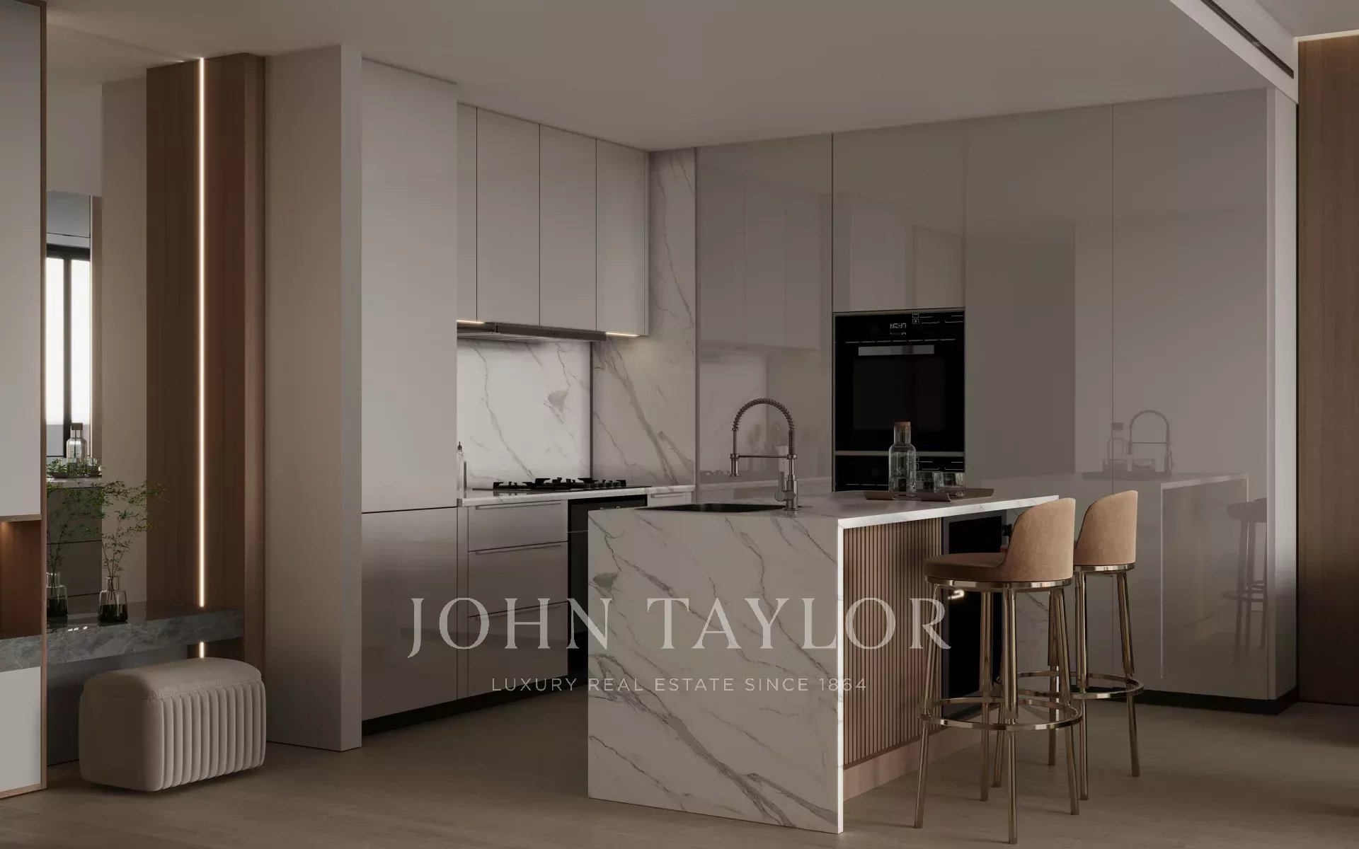 Wenn Sie diese geräumige Wohnung betreten, werden Sie von einem offenen Wohnbereich begrüßt, der das Wohnzimmer und den Essbereich nahtlos miteinander verbindet und durch große Fenster mit Blick auf [Beschreibung der Ansicht einfügen] mit natürlichem Licht durchflutet wird. Die elegante Küche ist mit erstklassigen Geräten und reichlich Stauraum ausgestattet und eignet sich perfekt zum Kochen und für Gäste.