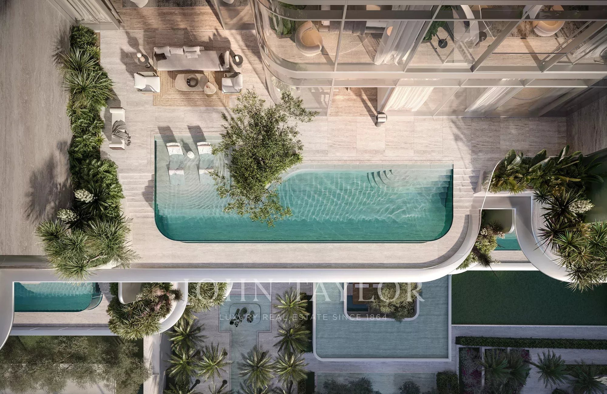 Die Residenz verfügt über einen direkten privaten Fahrstuhlzugang, doppelte Deckenhöhe, raumhohe Verglasung, nahtlose Integration von Innen- und Außenbereich und intelligente Hausautomation.