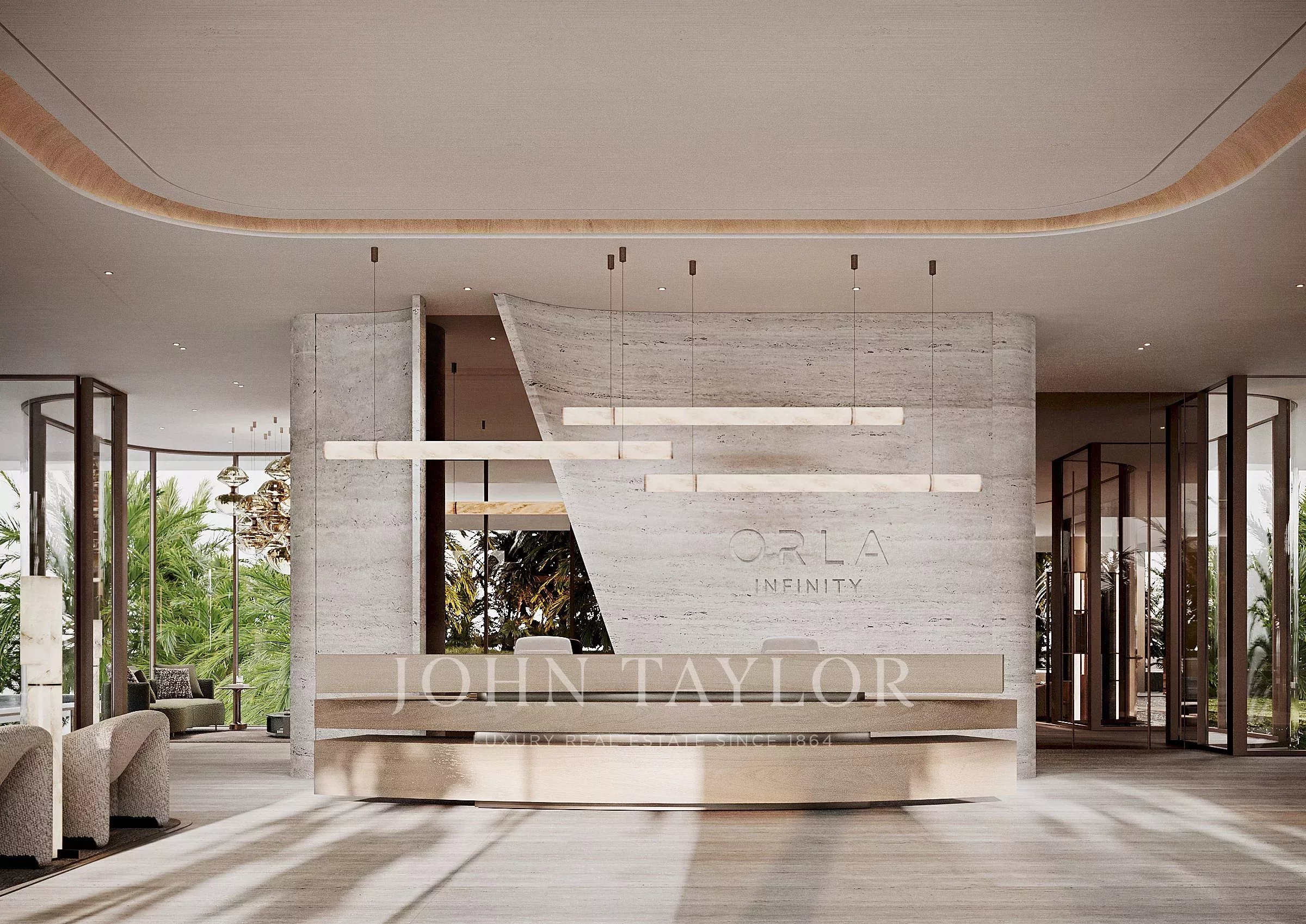 Eine begrünte Auffahrt führt zu einem privaten Eingang, der Sie in ORLA Infinity willkommen heißt. Wenn Sie die Lobby im Erdgeschoss betreten, erwartet Sie ein Service von Weltklasse, begleitet von exquisiten Kunstwerken und fließenden Wasserspielen, die die Erhabenheit des Raumes noch verstärken. Diskrete Aufzüge bringen Sie mühelos von der sicheren Parkgarage oder dem Erdgeschoss direkt zu Ihrer Wohnung, was Privatsphäre und Komfort gewährleistet.