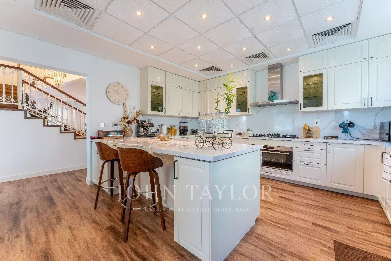 Treten Sie ein und erleben Sie ein Haus, das sowohl für anspruchsvolle Unterhaltung als auch für den täglichen Komfort konzipiert ist. Die offene Küche lässt sich mühelos in den geräumigen Wohn- und Essbereich integrieren, während die raumhohen Fenster eine Fülle von natürlichem Licht und einen atemberaubenden Blick auf den Golfplatz bieten.