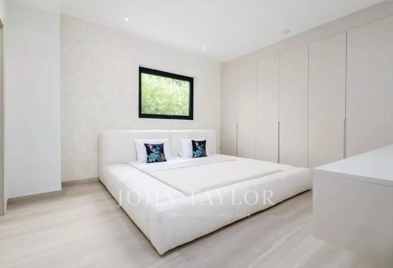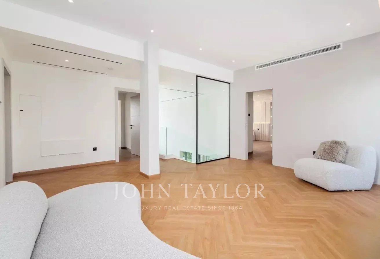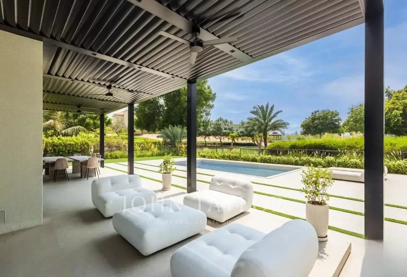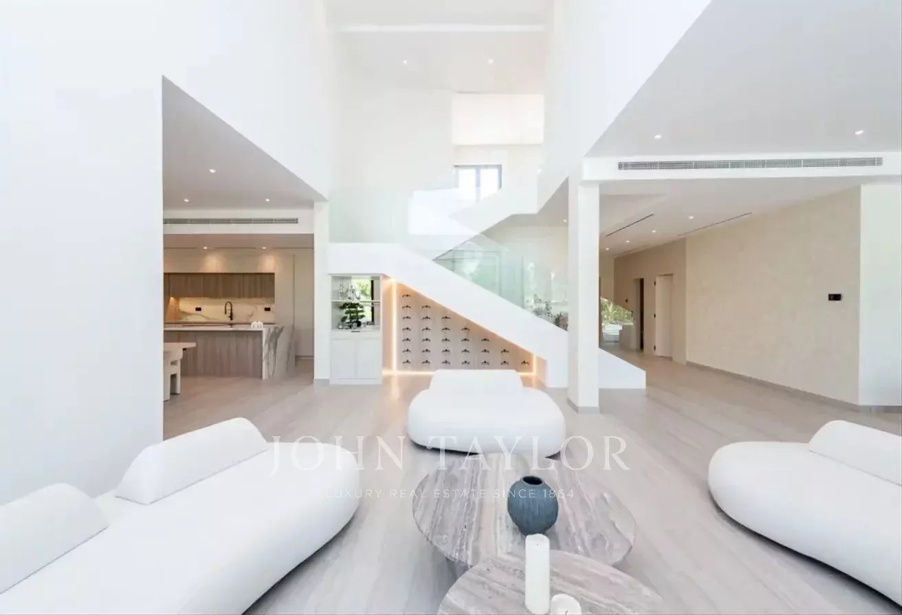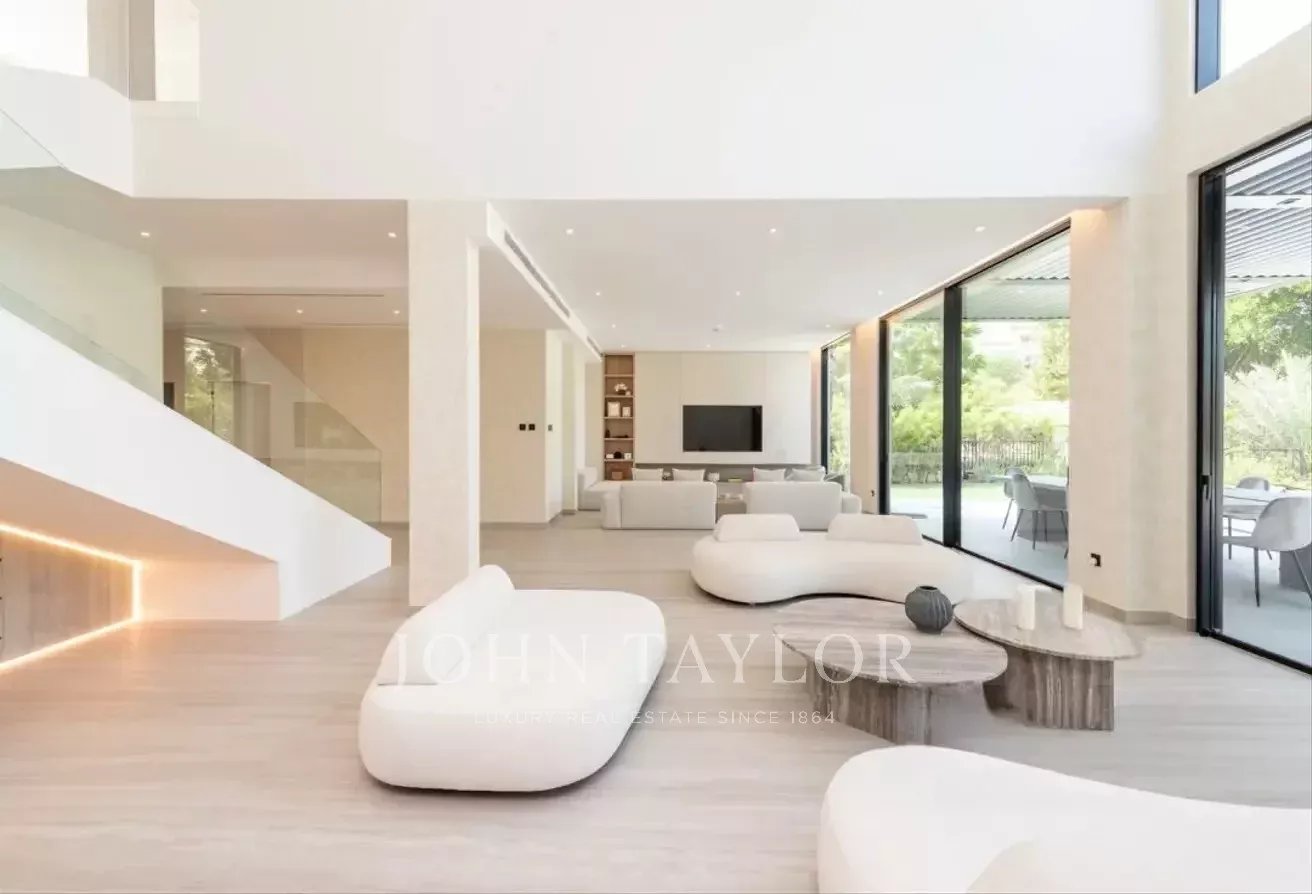 John Taylor Dubai präsentiert mit Stolz diese vollständig renovierte und erweiterte Villa mit fünf Schlafzimmern in der prestigeträchtigen Jumeirah Islands Community. Diese 576 m² große Luxusresidenz verbindet nahtlos moderne Raffinesse mit zeitloser Eleganz.