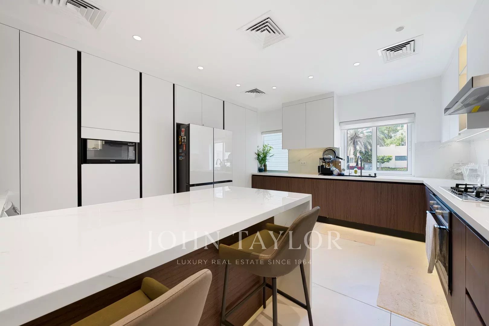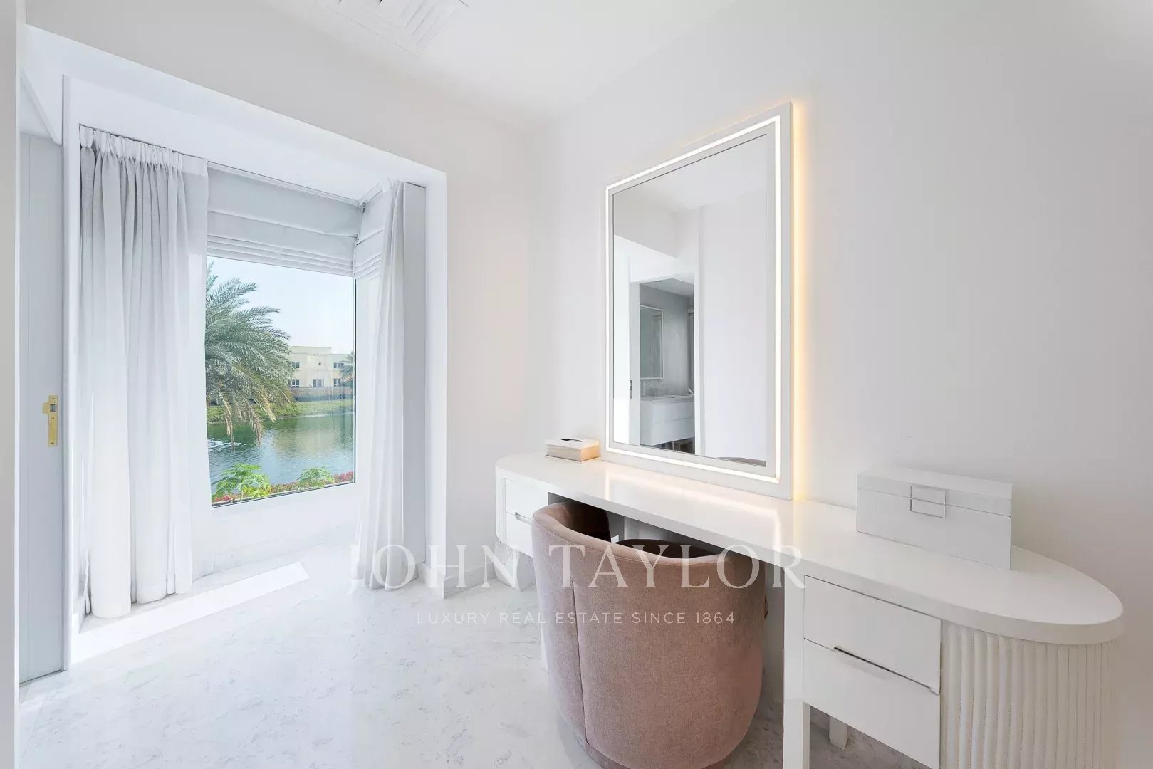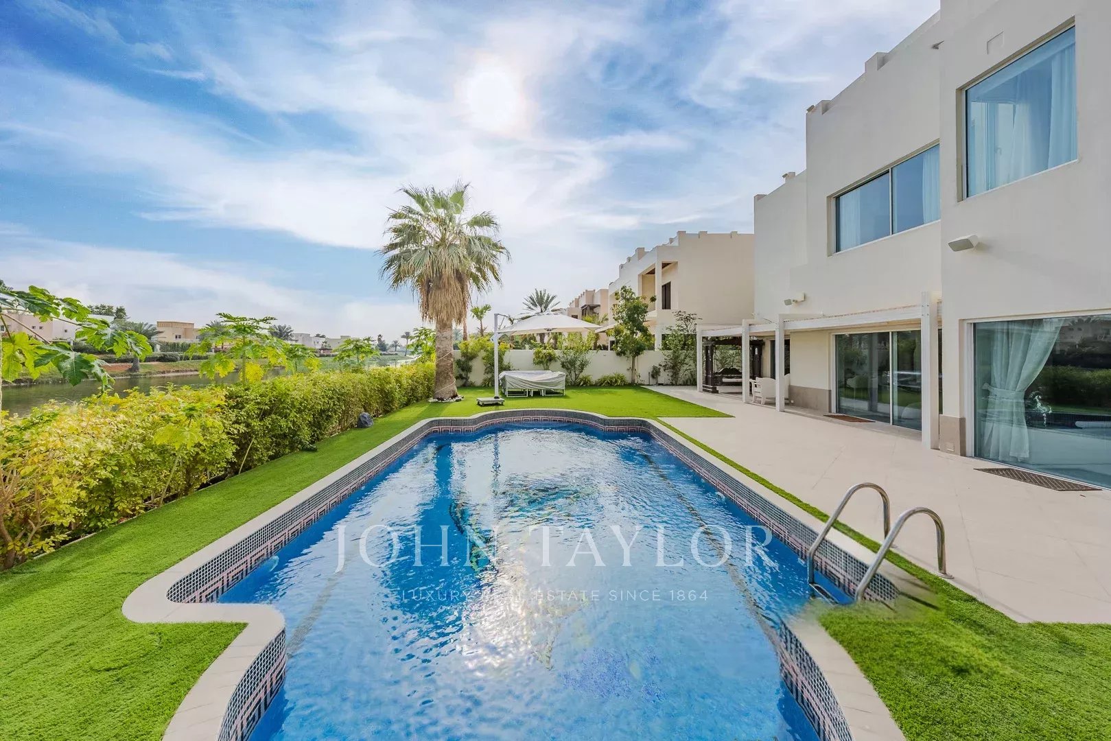 Erleben Sie den Inbegriff des luxuriösen Wohnens in dieser vollständig modernisierten Villa mit fünf Schlafzimmern in der prestigeträchtigen Meadows 7 Community. Entworfen von dem renommierten Studio Mastrella (Italien), bietet diese anspruchsvolle Residenz einen atemberaubenden Blick auf den See, hochwertige europäische Oberflächen und eine elegante Verschmelzung von modernem Design und Funktionalität.