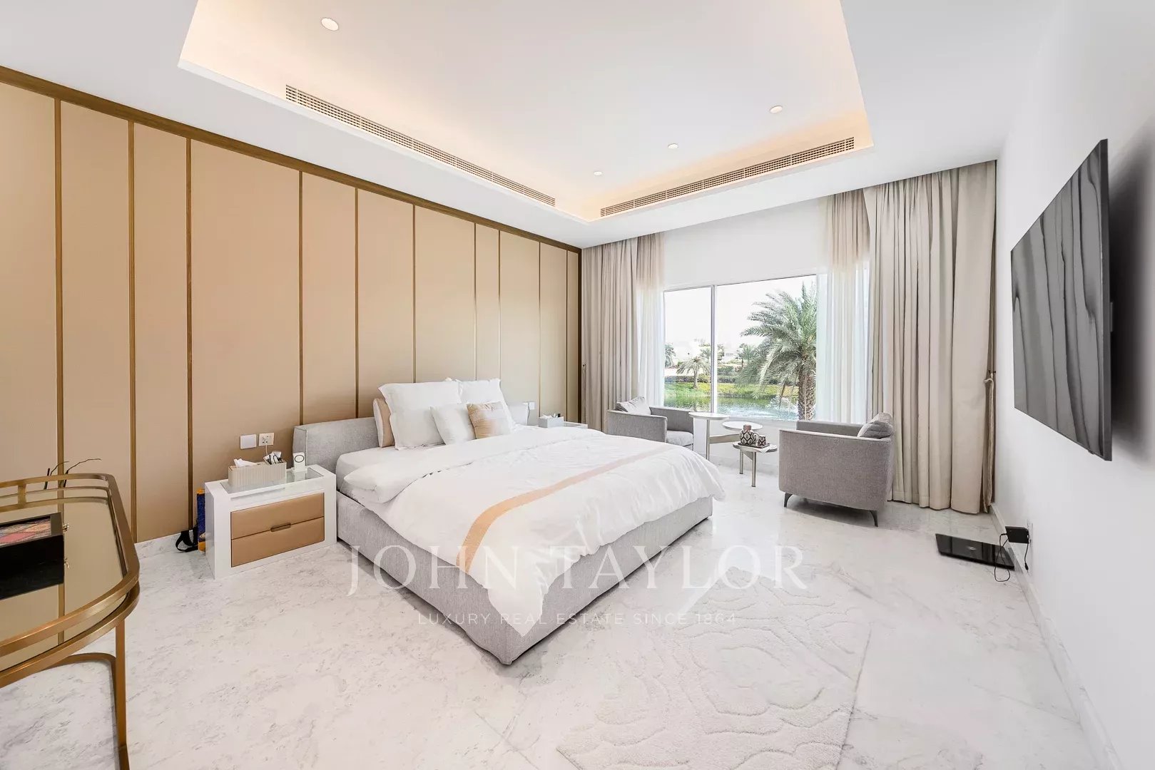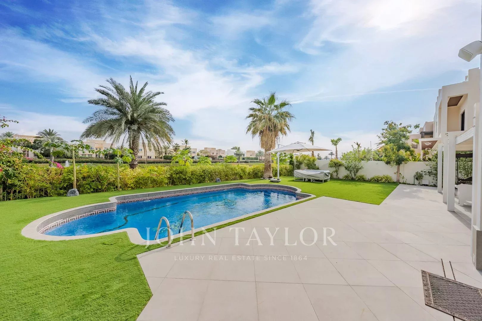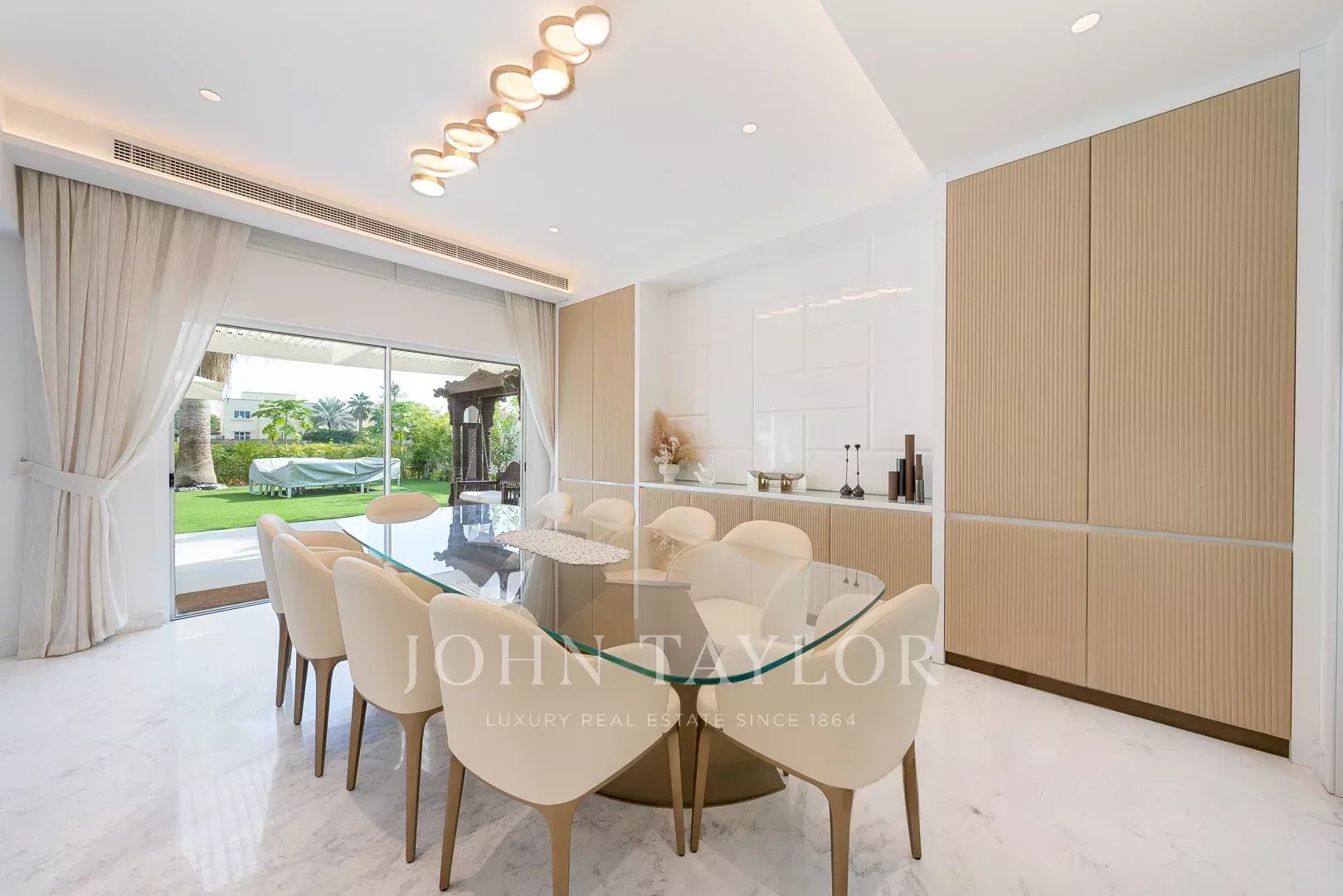 Erleben Sie den Inbegriff des luxuriösen Wohnens in dieser vollständig modernisierten Villa mit fünf Schlafzimmern in der prestigeträchtigen Meadows 7 Community. Entworfen von dem renommierten Studio Mastrella (Italien), bietet diese anspruchsvolle Residenz einen atemberaubenden Blick auf den See, hochwertige europäische Oberflächen und eine elegante Verschmelzung von modernem Design und Funktionalität.