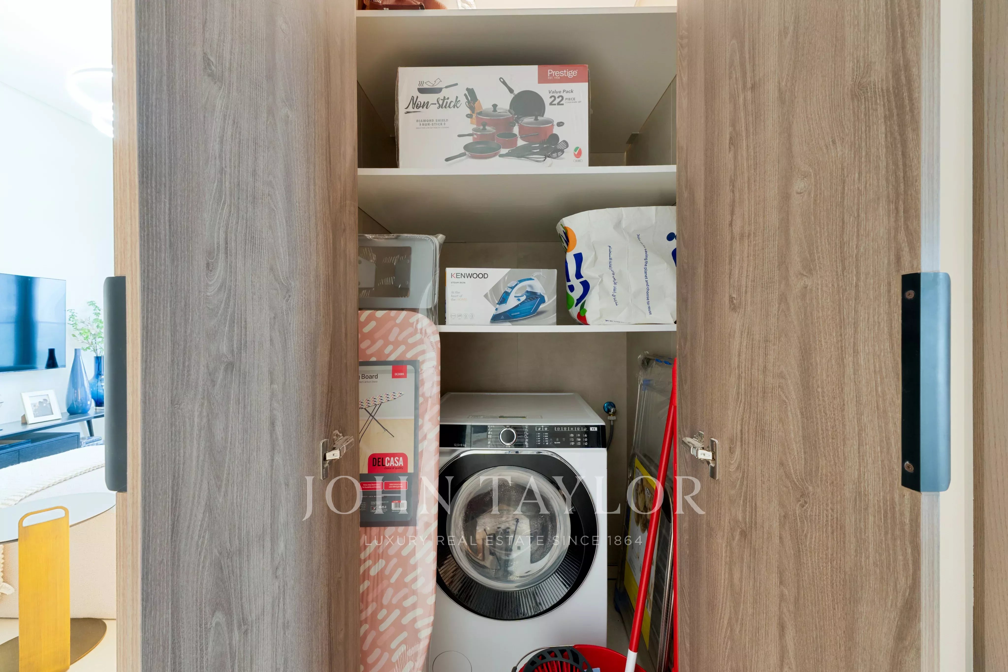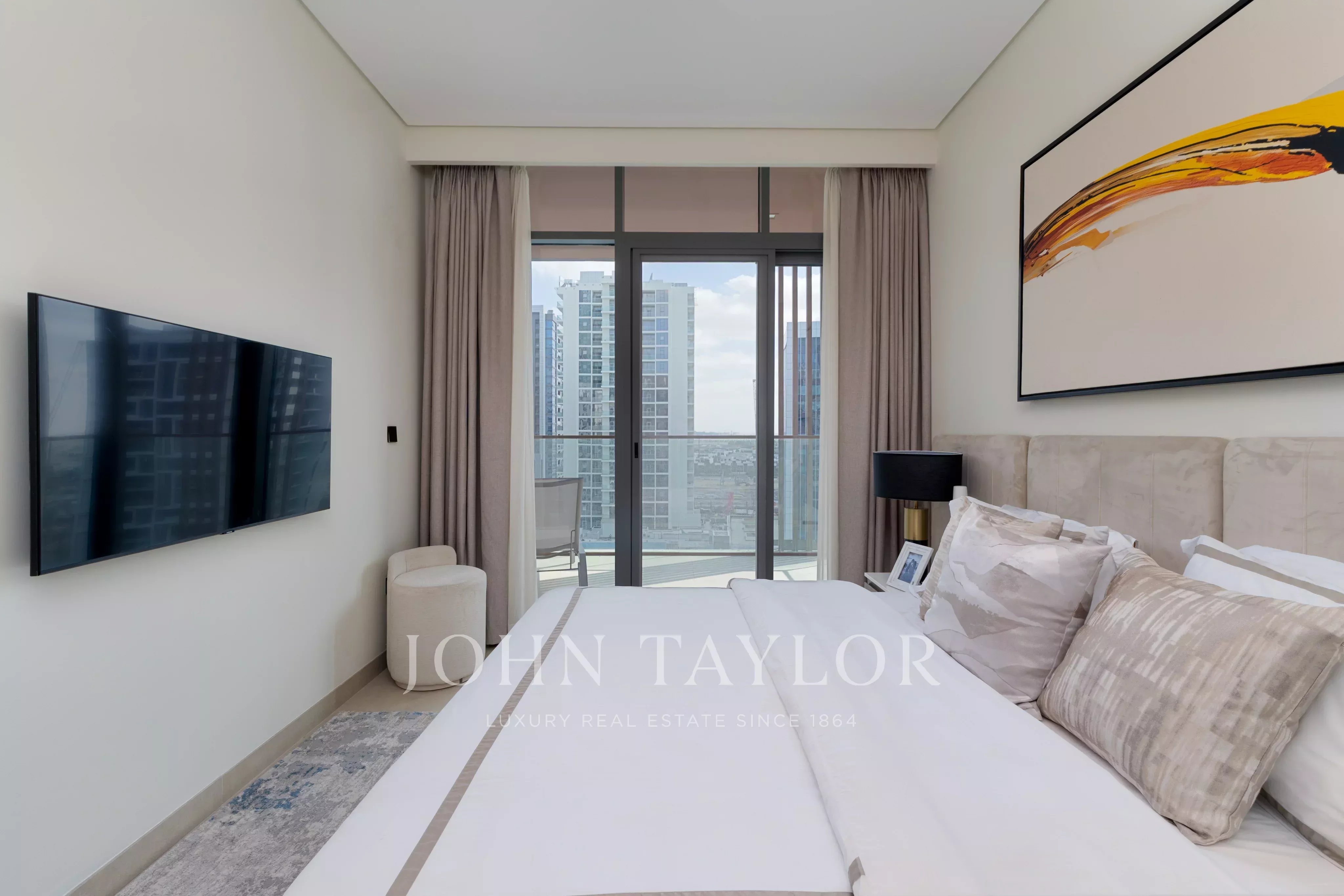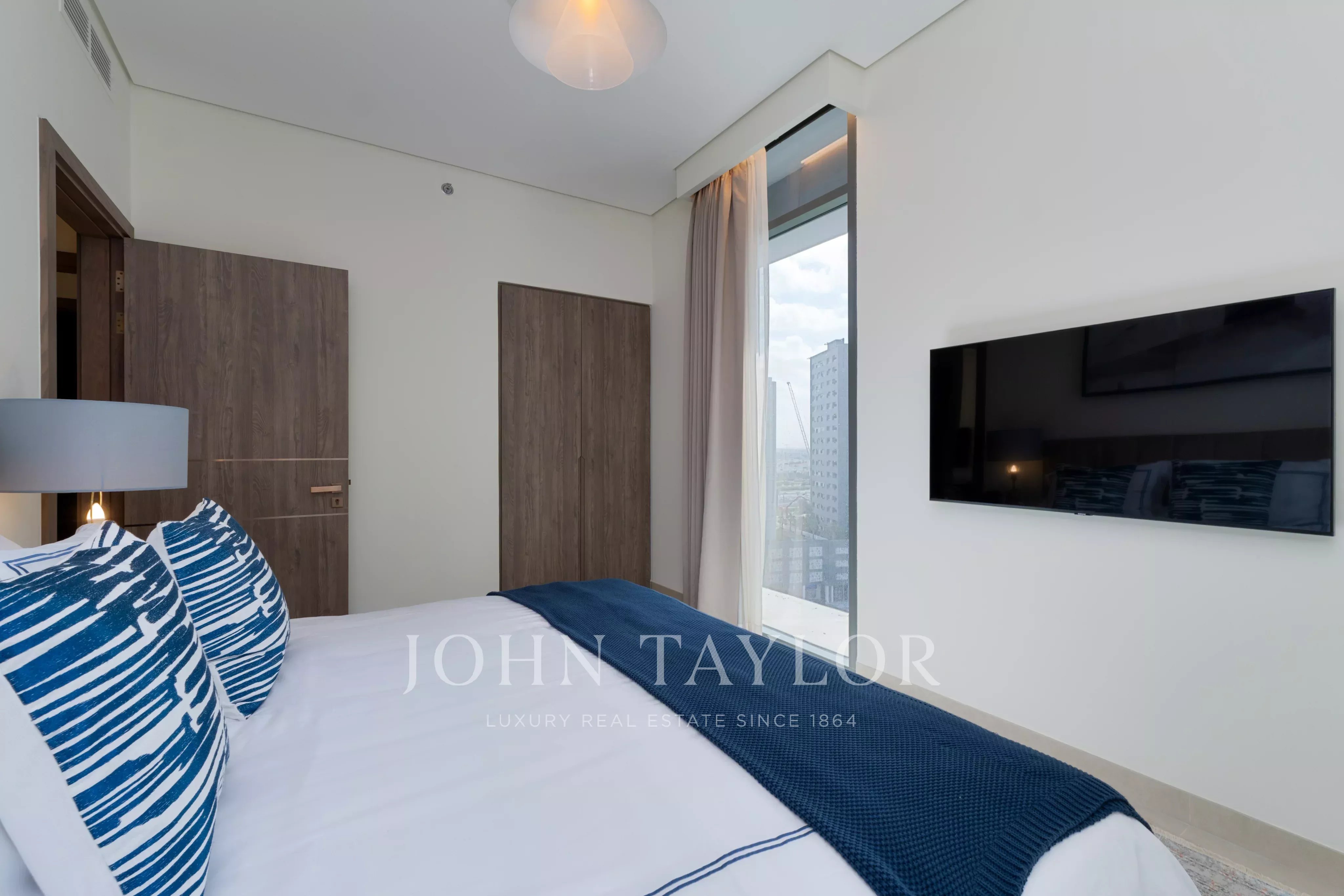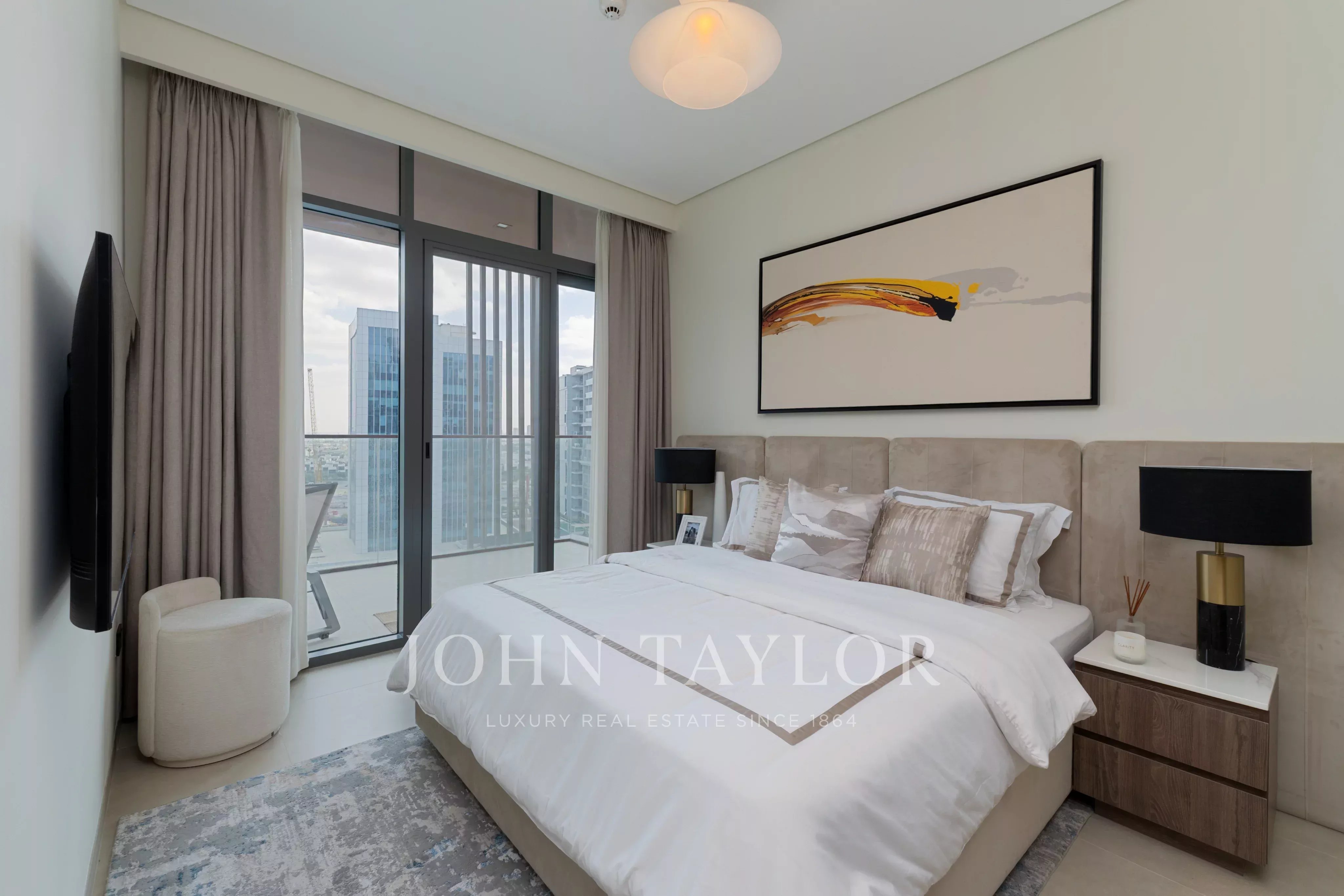 Dieses stilvolle Apartment mit 2 Zimmern und 107 m² Wohnfläche befindet sich mitten im lebendigen Viertel Business Bay, Dubai. Die große Fensterfront und der geräumige Balkon bieten Ihnen einen fantastischen Ausblick auf die Skyline, während hochwertige Ausstattungsmerkmale wie Klimaanlage, Internet und Schiebefenster für höchsten Wohnkomfort sorgen.
