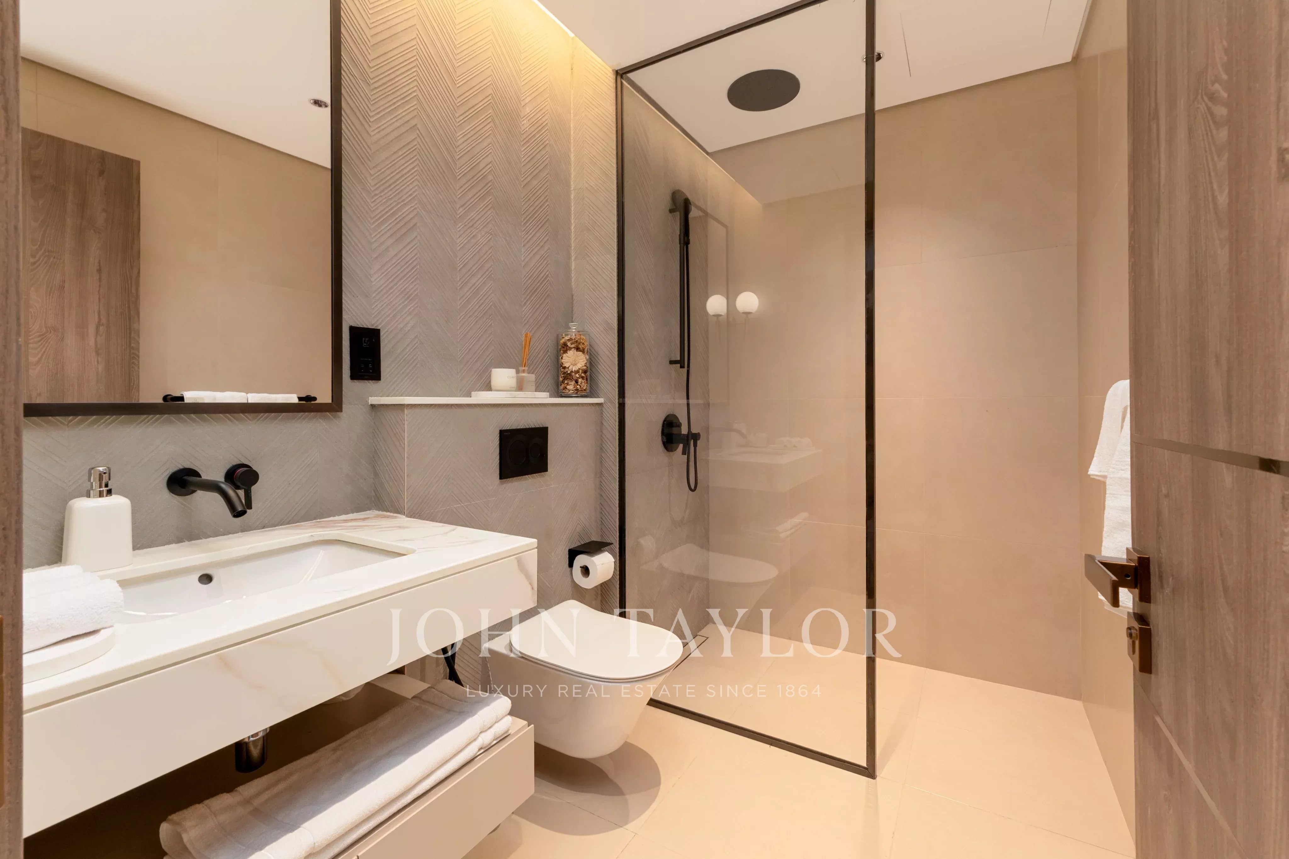 Das Gebäude bietet zahlreiche Annehmlichkeiten wie Concierge-Service, modernen Aufzug, Valet-Parking sowie ein umfangreiches Sicherheitssystem inklusive Alarmanlage, Video-Sprechanlage, Safe, Sicherheitstür und 24-Stunden-Sicherheitsdienst. Für Ihre Freizeitgestaltung stehen Ihnen Fitnessstudio, Spa, Swimmingpool und ein Spielplatz zur Verfügung.