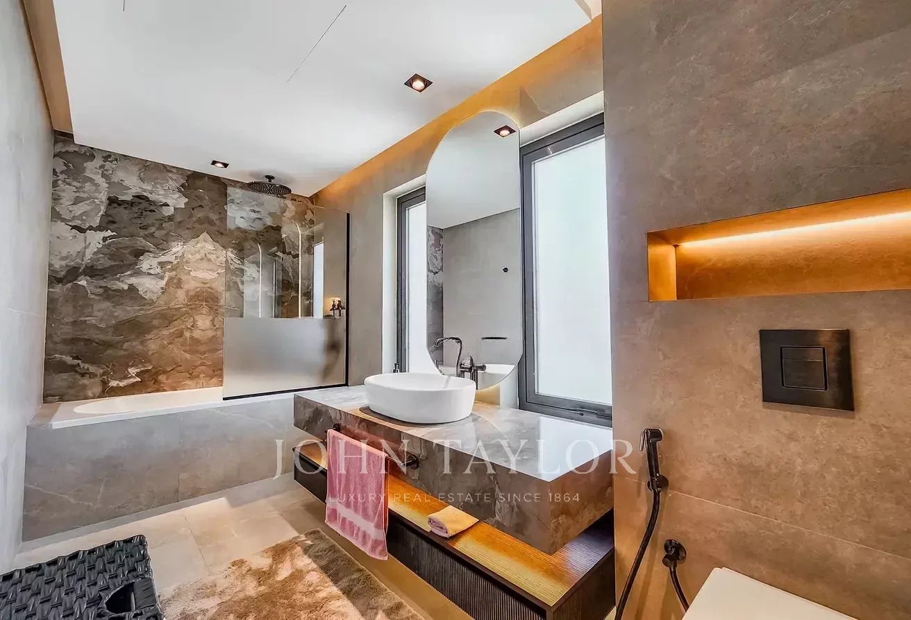 Diese Villa bietet eine nahtlose Mischung aus Eleganz und Komfort, mit geräumigen Innenräumen, luxuriösen Oberflächen und einem einladenden Außenbereich mit einem atemberaubenden Infinity-Pool und Seeblick.