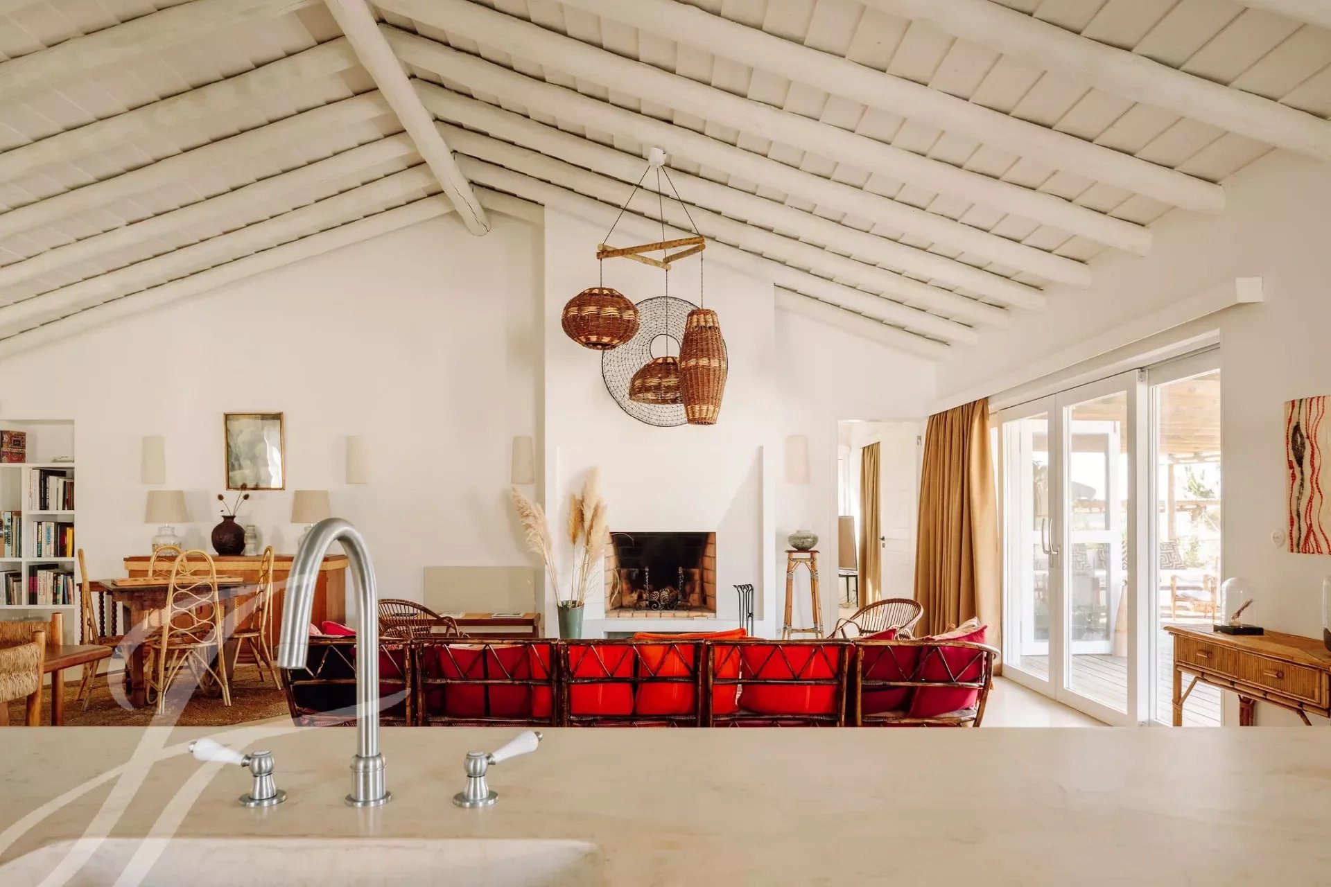 Fantastische Villa mit 5 Schlafzimmern und Pool in der Nähe des Carvalhal-Strandes in Comporta. Villa mit 279 m2, auf einem Grundstück von 2.295 m2, bestehend aus 5 Suiten, Wohn-/Esszimmer und offener Küche mit 60 m2 und Swimmingpool mit 50 m2. Diese Villa im traditionellen Comporta-Stil verfügt über hervorragende Oberflächen und einen Panoramablick über die Reisfelder.