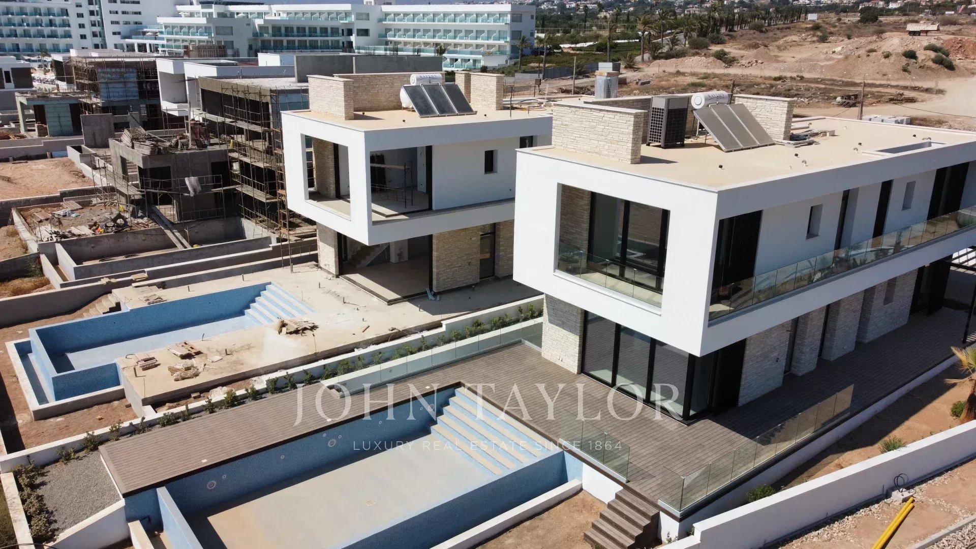Nur wenige Schritte vom Mittelmeer entfernt verkörpern diese Villen am Meer zeitgemäßen Luxus direkt an der Küste. Umgeben von wunderschön gestalteten Grünanlagen mit direktem Zugang zum Meer vereinen diese Villen großzügige Architektur mit hochwertigen Ausstattungen sowie weitläufigen Innen- und Außenbereichen. Bodentiefe Fenster, private Überlaufpools, angelegte Gärten und großzügige Terrassen sorgen für ein nahtloses Wohnerlebnis drinnen und draußen in einer ruhigen und exklusiven Umgebung.
