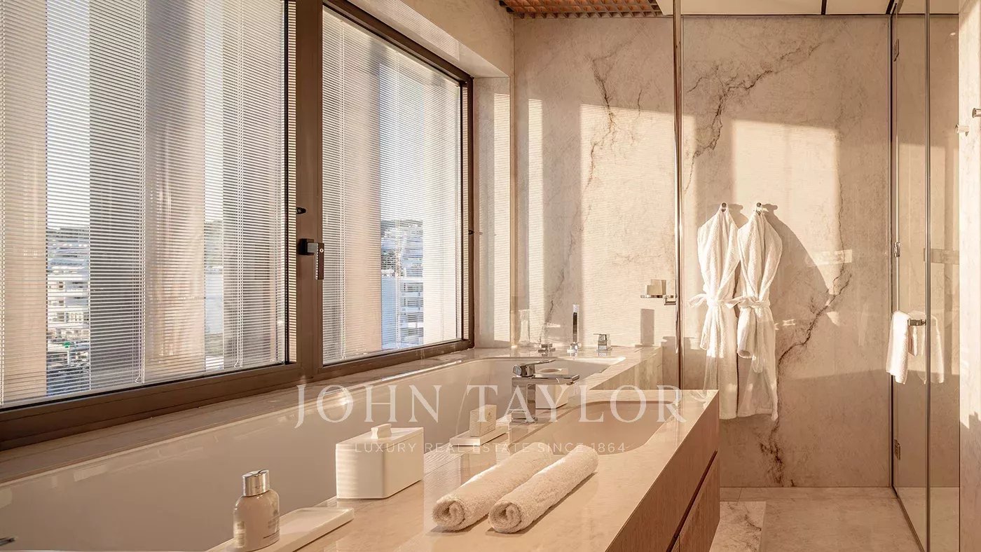 Die Immobilie erstreckt sich über eine Gesamtfläche von 267 m², davon 154 m² überdachte Innenräume und 53 m² überdachte Veranda, die durch zusätzliche Freiflächen ergänzt werden. Die Wohnung wurde nach den höchsten Standards entworfen und verfügt über ein Smart-Home-System, eine Fußbodenheizung, eine VRV-Klimaanlage, Marmor- und Massivholzböden, eine hochmoderne Küche mit hochwertigen Geräten und einen sicheren überdachten Parkplatz. Vom Boden bis zur Decke reichende Fenster bieten einen atemberaubenden Blick auf das Mittelmeer, während weitläufige Terrassen zum nahtlosen Leben im Freien einladen.