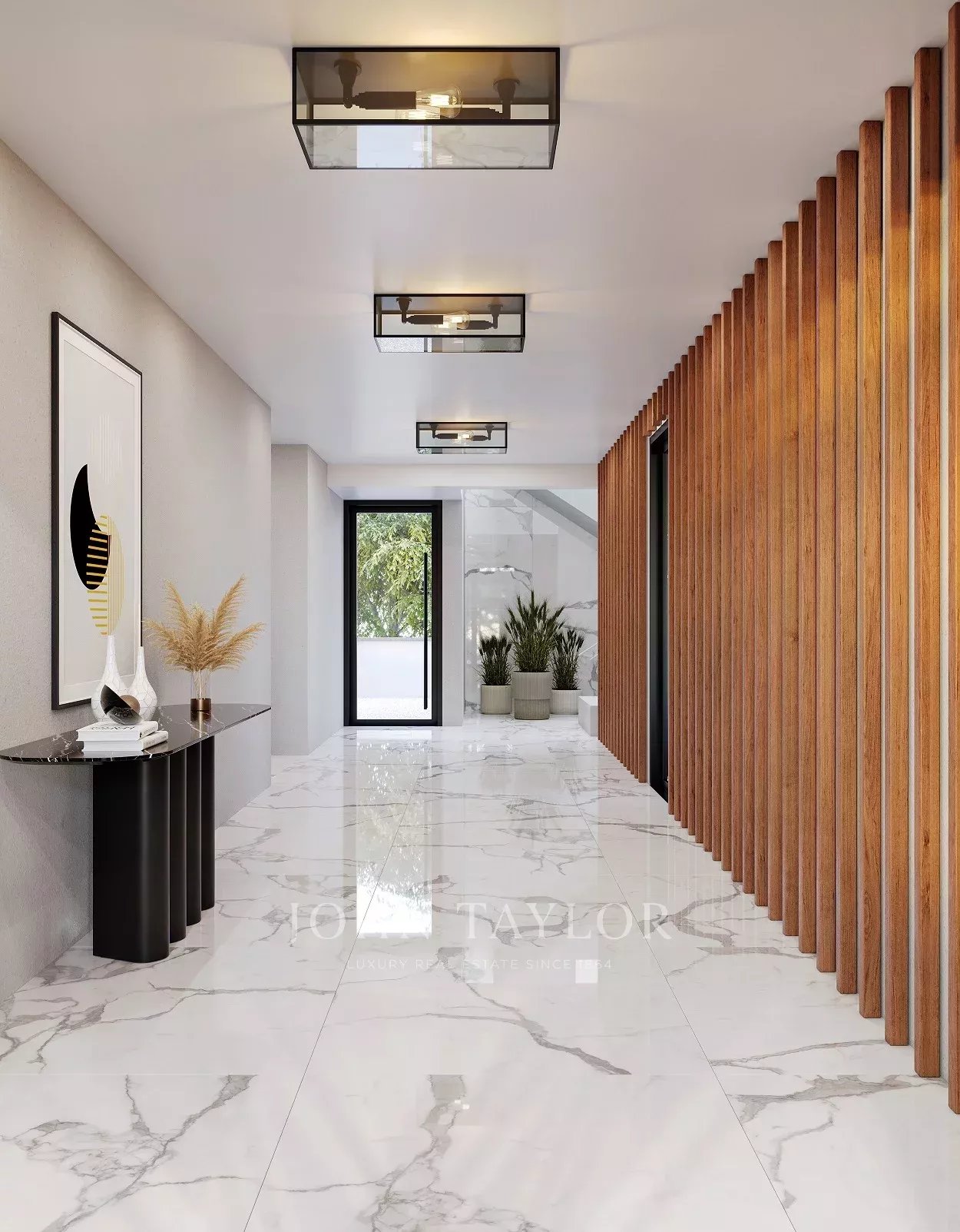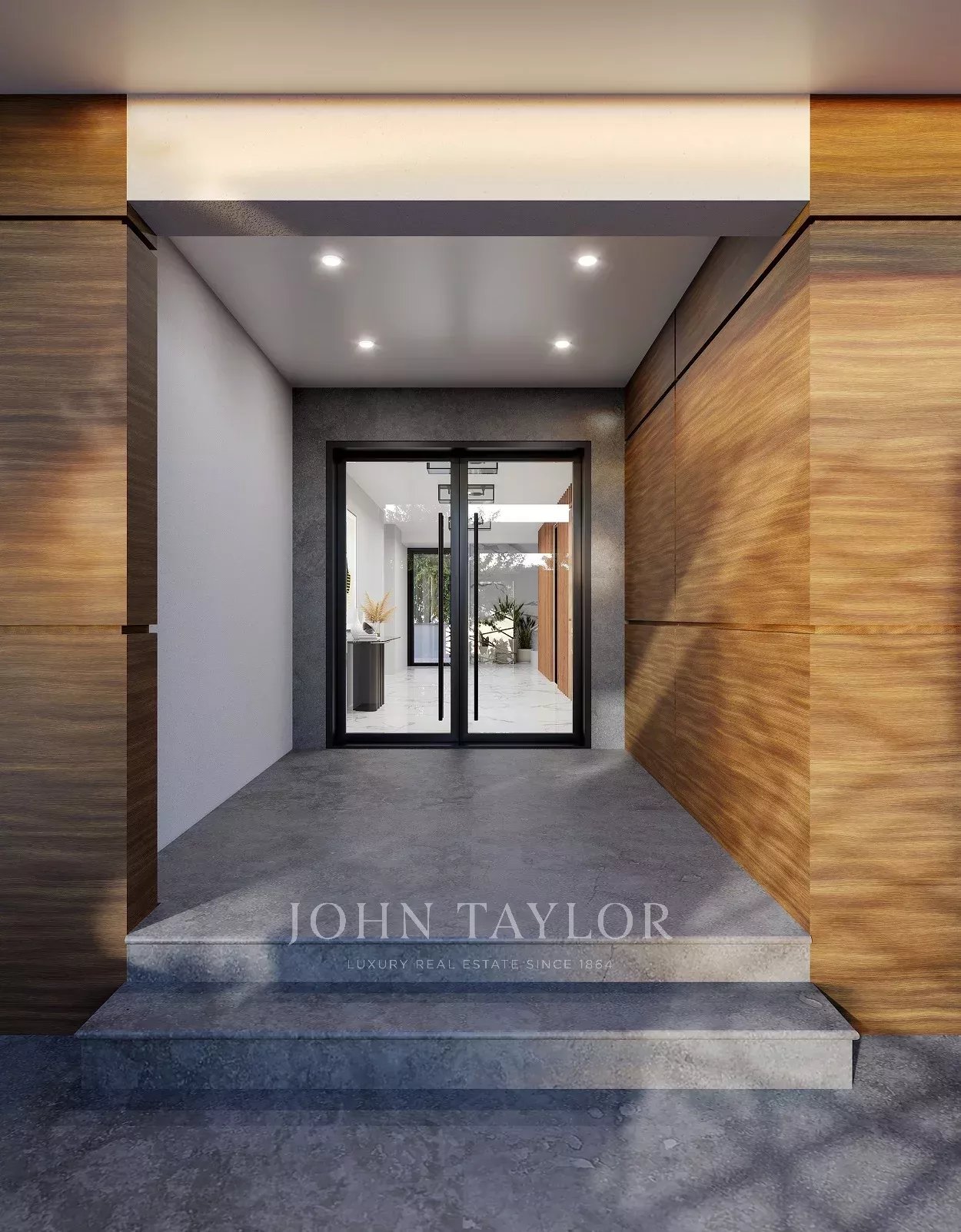 Das moderne architektonische Konzept des Gebäudes kombiniert warme Holzakzente mit dunklem Betonstein und schafft so eine elegante und zeitlose Fassade. Großzügige Balkone mit integrierter Begrünung bieten jeder Wohnung einen privaten Rückzugsort im Freien, während große, sorgfältig positionierte Fenster dafür sorgen, dass die Innenräume den ganzen Tag über mit natürlichem Licht durchflutet werden. Mit insgesamt nur acht Wohnungen bietet das Projekt Exklusivität, geringe Dichte und eine raffinierte Wohnatmosphäre.