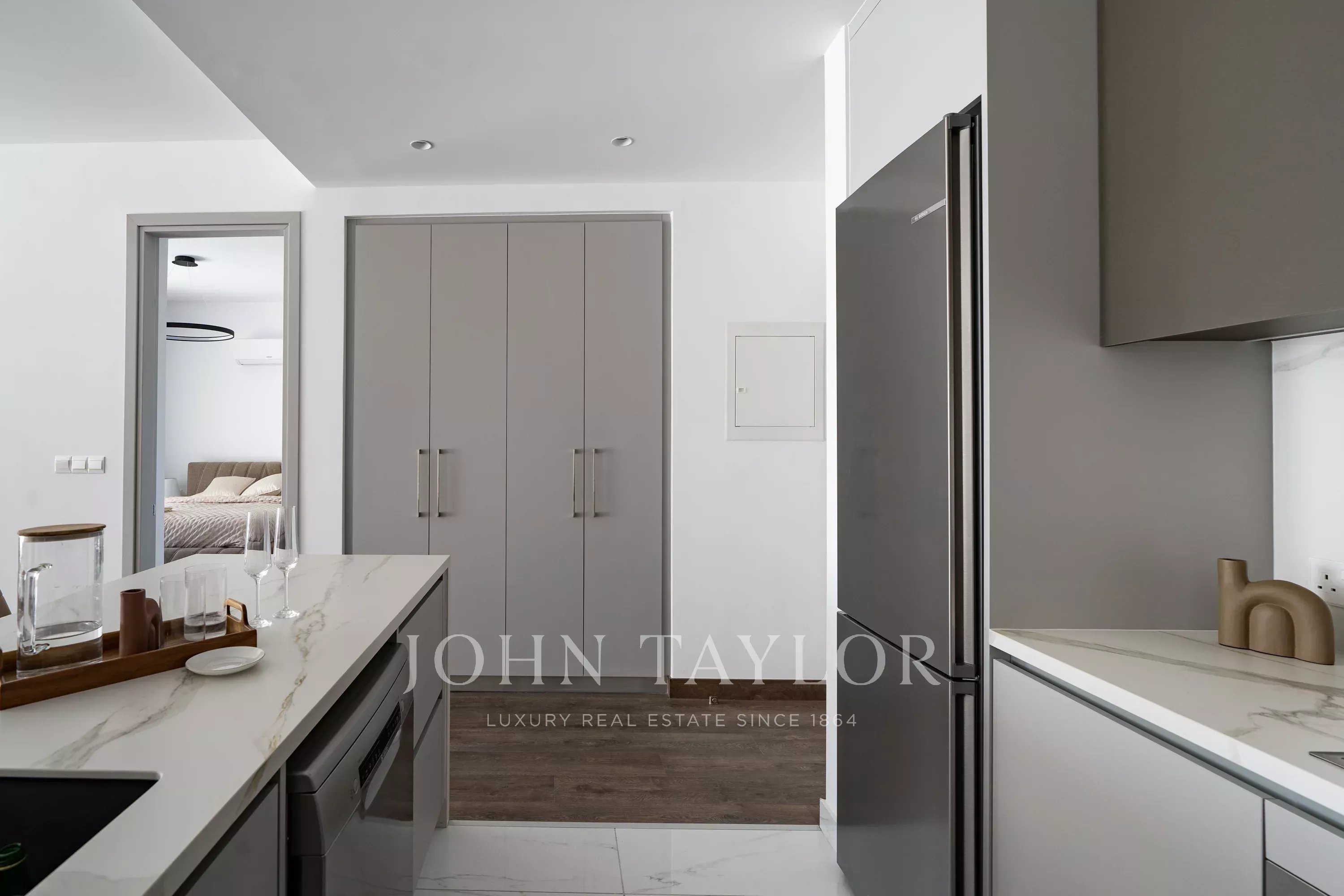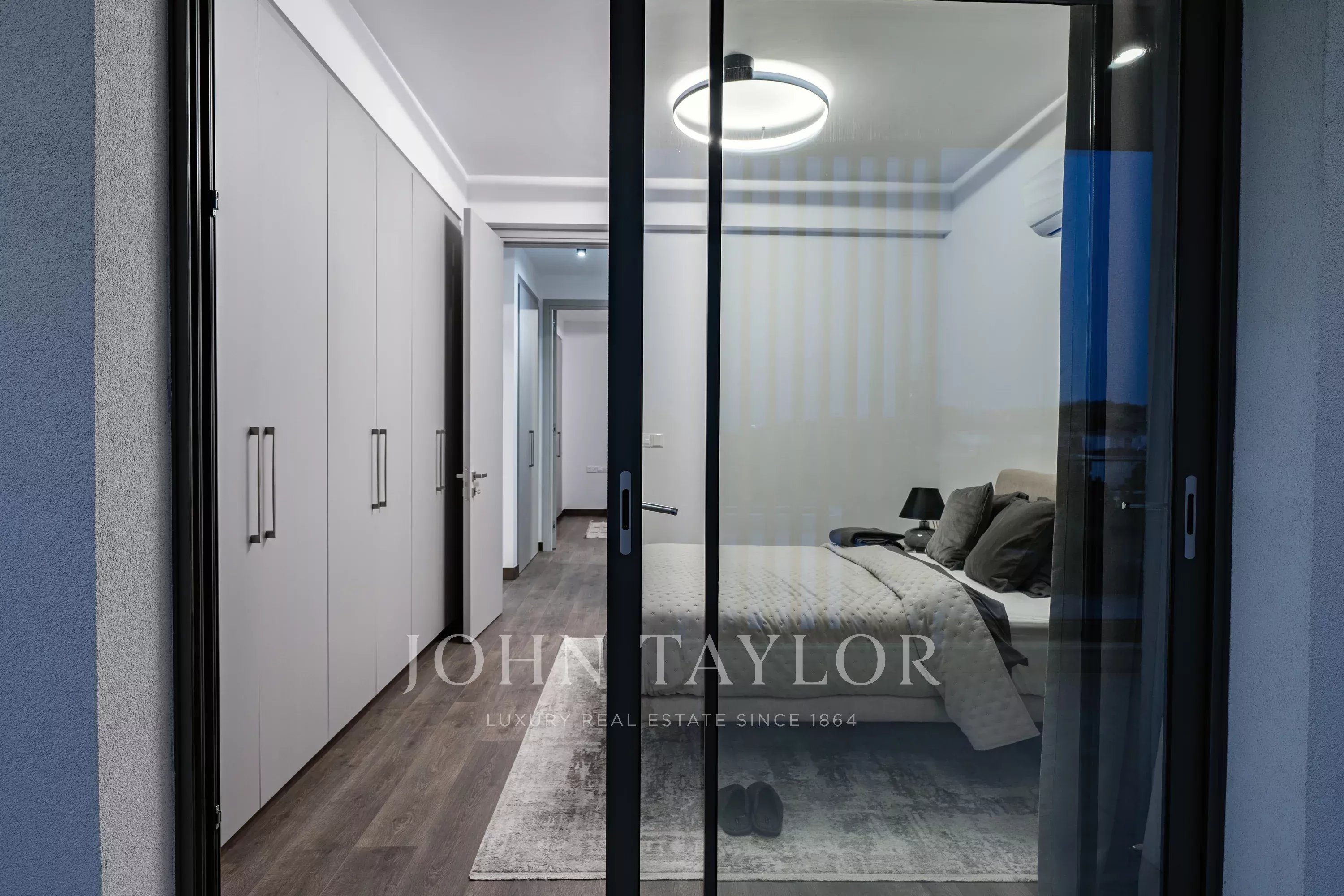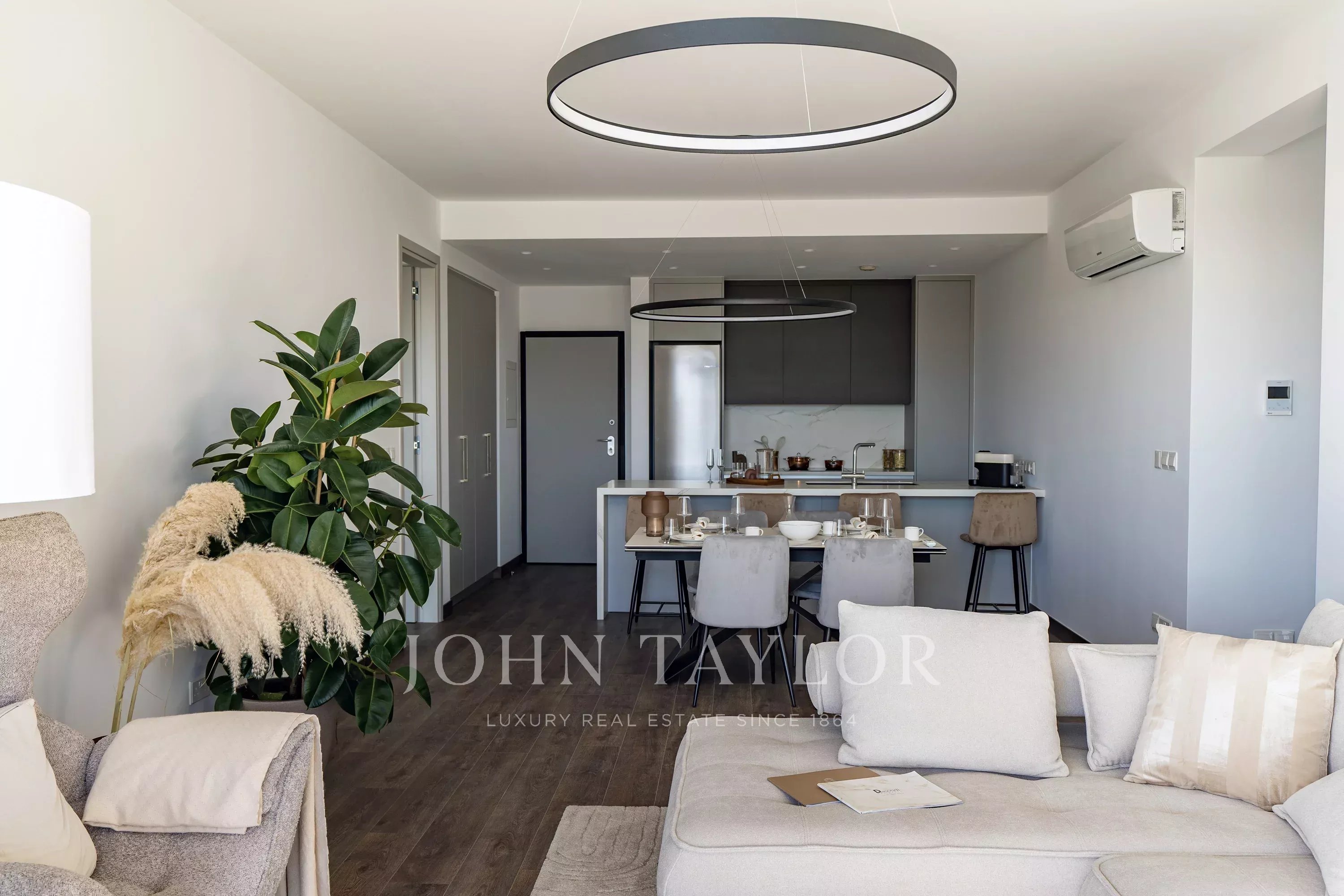 Energieeffizienzklasse A, VRV-Klimaanlage, Fußbodenheizung, thermische Aluminium-Doppelverglasung, hohe Decken (~3,0 m), hochwertige Keramikoberflächen, Einbauschränke und eine moderne Küchengestaltung.