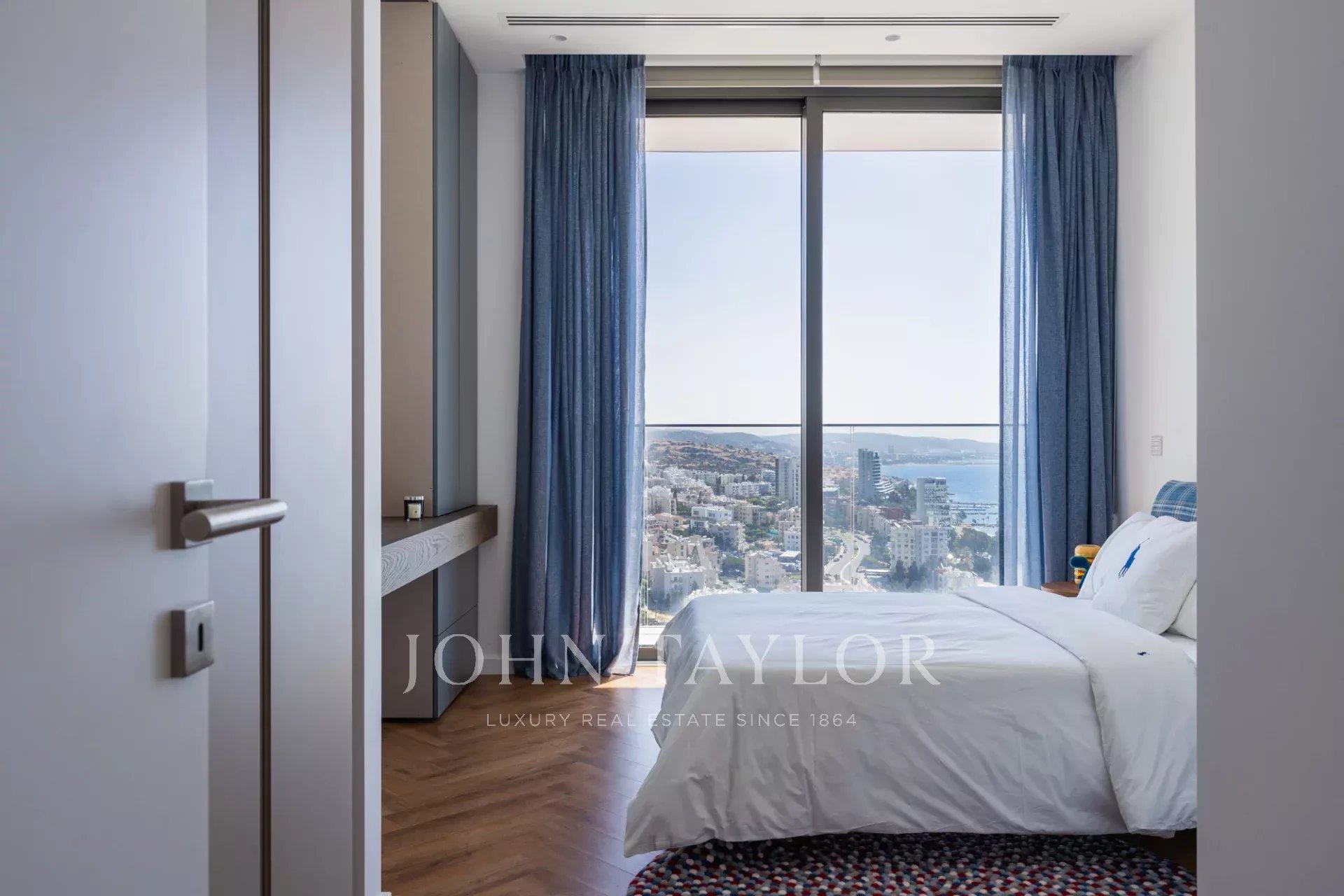 Die außergewöhnliche Residenz erstreckt sich über das gesamte 20. Stockwerk und bietet absolute Privatsphäre, großzügigen Raum und atemberaubende Ausblicke über das Mittelmeer. Auf einer beeindruckenden Bruttofläche von 579 m² verbindet sie Innen- und Außenbereiche durch raumhohe Fenster und fließendes Design.