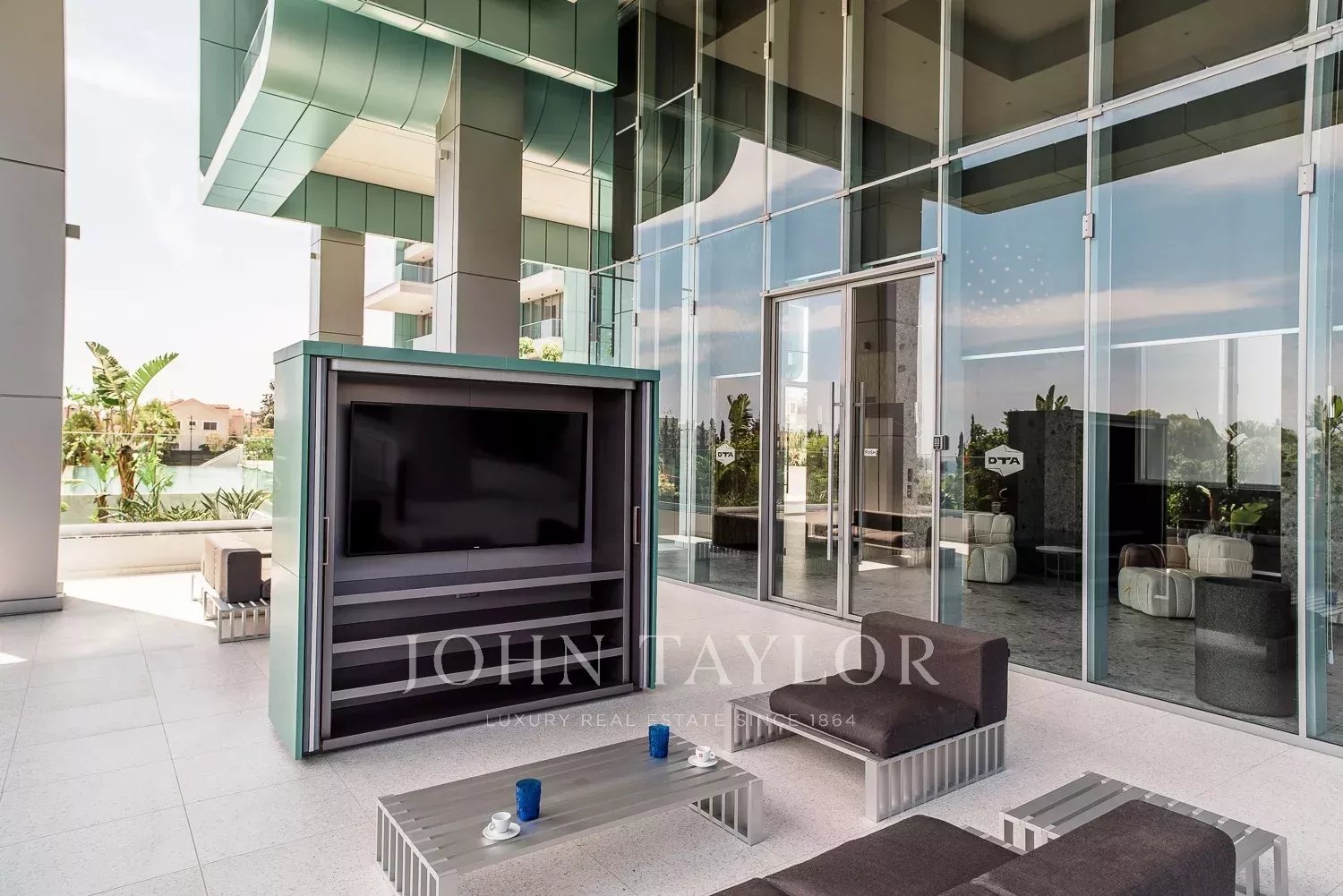 Die Wohnung zeichnet sich durch erstklassiges Design und Handwerkskunst aus, mit erstklassigen Oberflächen und hochwertigen Materialien von renommierten internationalen Marken. Die Heizung erfolgt über ein zentrales Unterflur-Wassersystem, das an die energieeffiziente VRV-Technologie angeschlossen ist, während das gleiche VRV-System für eine diskrete und effektive Klimatisierung durch verborgene Deckengeräte mit eleganten Gittern sorgt. Die Küche und die Bäder wurden von Scavolini entworfen, einer führenden italienischen Marke, die zeitgenössische Ästhetik mit funktionaler Eleganz verbindet. Fliesen von Atlas Concorde verleihen den Innenräumen eine raffinierte Note, und die Immobilie verfügt über eine sichere, feuerfeste Außentür und rahmenlose Innentüren für mehr Privatsphäre und Stil.