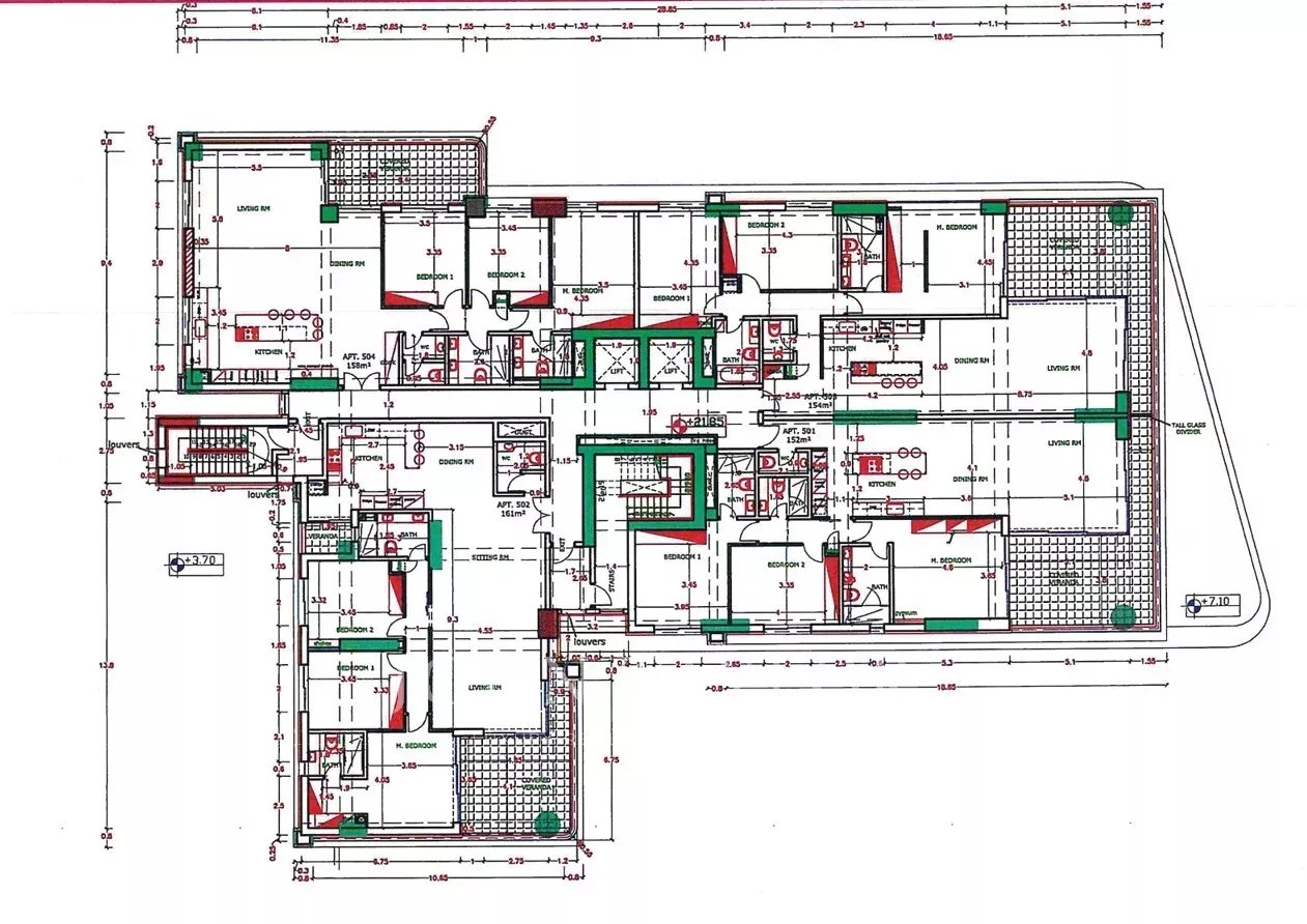 * Unter den vier Wohnungen auf dieser Ebene ist noch eine weitere Wohnung mit 3 Schlafzimmern verfügbar (Innenfläche 161 m²), so dass die Möglichkeit besteht, die Einheiten zu kombinieren, um eine beeindruckende Wohnung mit fünf oder sechs Schlafzimmern zu schaffen, die die Hälfte der Etage einnimmt