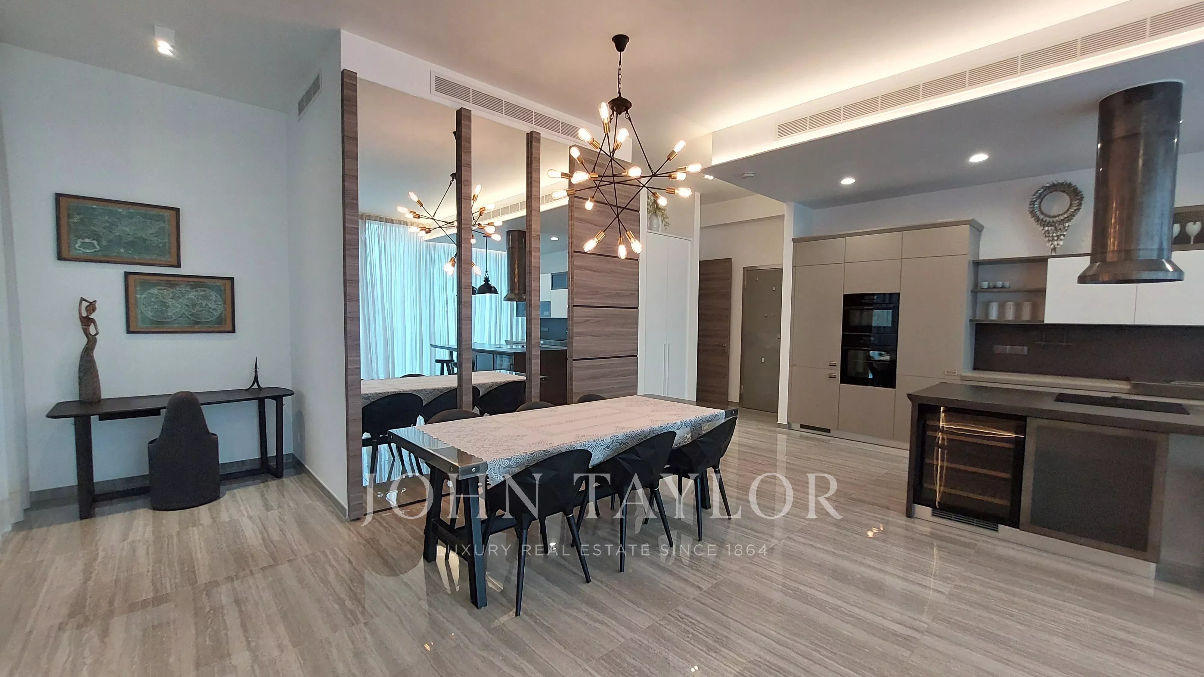 Die Wohnung steht für hochwertiges Design und Handwerkskunst, mit sorgfältig ausgewählten Materialien und Oberflächen von europäischen Premiummarken. Sie ist mit Fußbodenheizung, einem fortschrittlichen VRV-Klimatisierungssystem mit versteckten Einheiten, Scavolini-Küchen sowie Badezimmerarmaturen, Atlas Concorde-Fliesen, einer sicheren, feuersicheren Eingangstür und rahmenlosen Innentüren für ein elegantes architektonisches Erscheinungsbild ausgestattet.