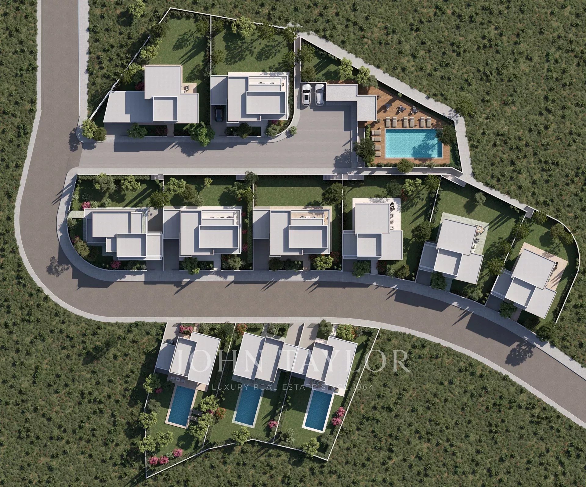 Von den elf geplanten Villen sind nur noch zwei verfügbar. Beide verfügen über drei Schlafzimmer, eine überdachte Innenfläche von 152,98 m², eine überdachte Veranda von 48,84 m² und einen überdachten Parkplatz von 19,46 m², auf Grundstücken von 405 m² und 413 m². Die Preise beginnen bei 900.000 € + MwSt.