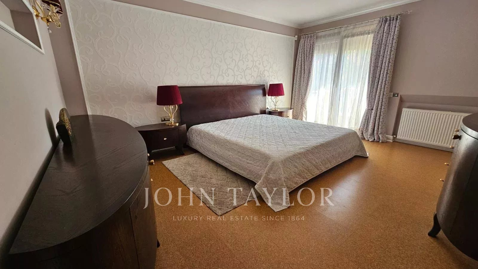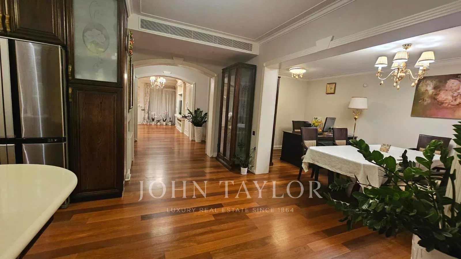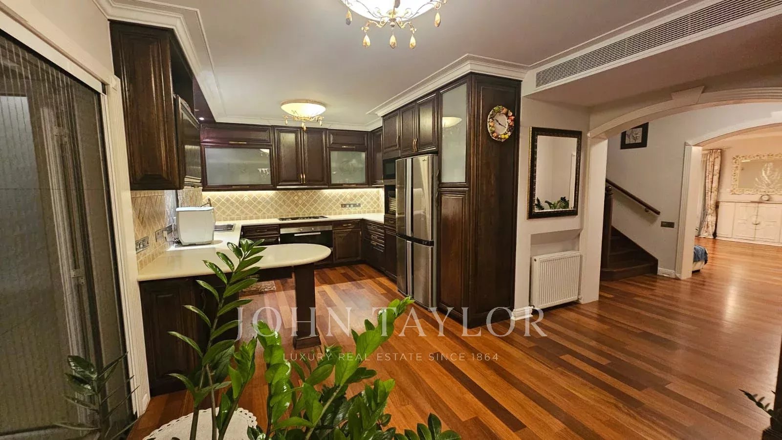 Das Erdgeschoss ist mit natürlichem Cumaru-Holzboden aus Brasilien ausgestattet, während das Obergeschoss mit warmem Kork belegt ist. Alle Möbel wurden aus Massivholz gefertigt, und die Beleuchtung stammt aus Italien, was der gesamten Wohnung einen Hauch von Raffinesse verleiht. Der Komfort wird durch eine Klimaanlage und eine Gasheizung mit dreizehn Heizkörpern noch erhöht.