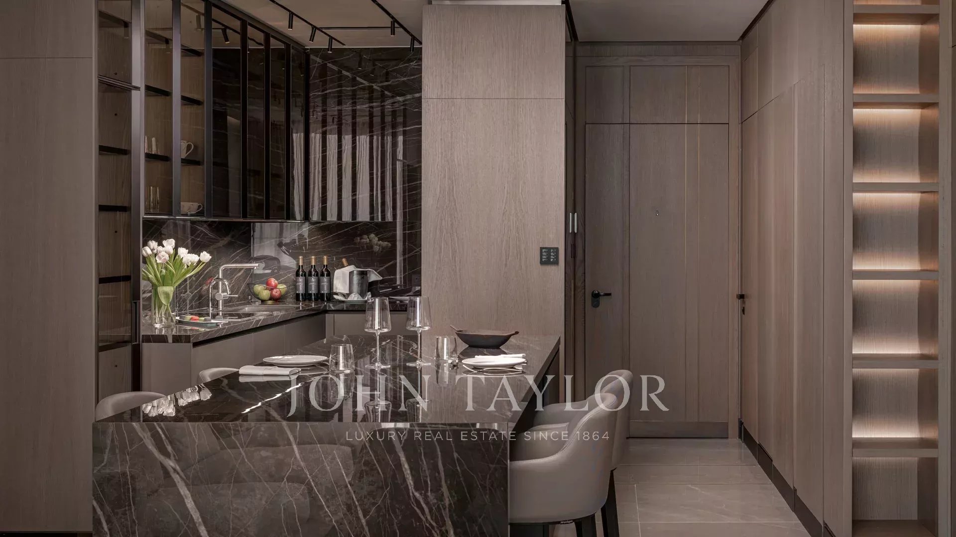 Das Interieur ist durchdacht und bietet ein Gleichgewicht zwischen Raffinesse und Komfort. Das Schlafzimmer verfügt über einen geräumigen begehbaren Kleiderschrank, während das Badezimmer, das mit raumhohem Marmor verkleidet ist, ein privates Spa-ähnliches Refugium darstellt. Der Wohn- und Essbereich öffnet sich zum Meer hin und wird durch luxuriöse Oberflächen wie Marmorböden und Massivholz in den Schlafzimmern bereichert. Eine voll ausgestattete, hochmoderne Küche, ein Smart-Home-System sowie integrierte Sound- und TV-Geräte machen das tägliche Leben bequem und stilvoll.