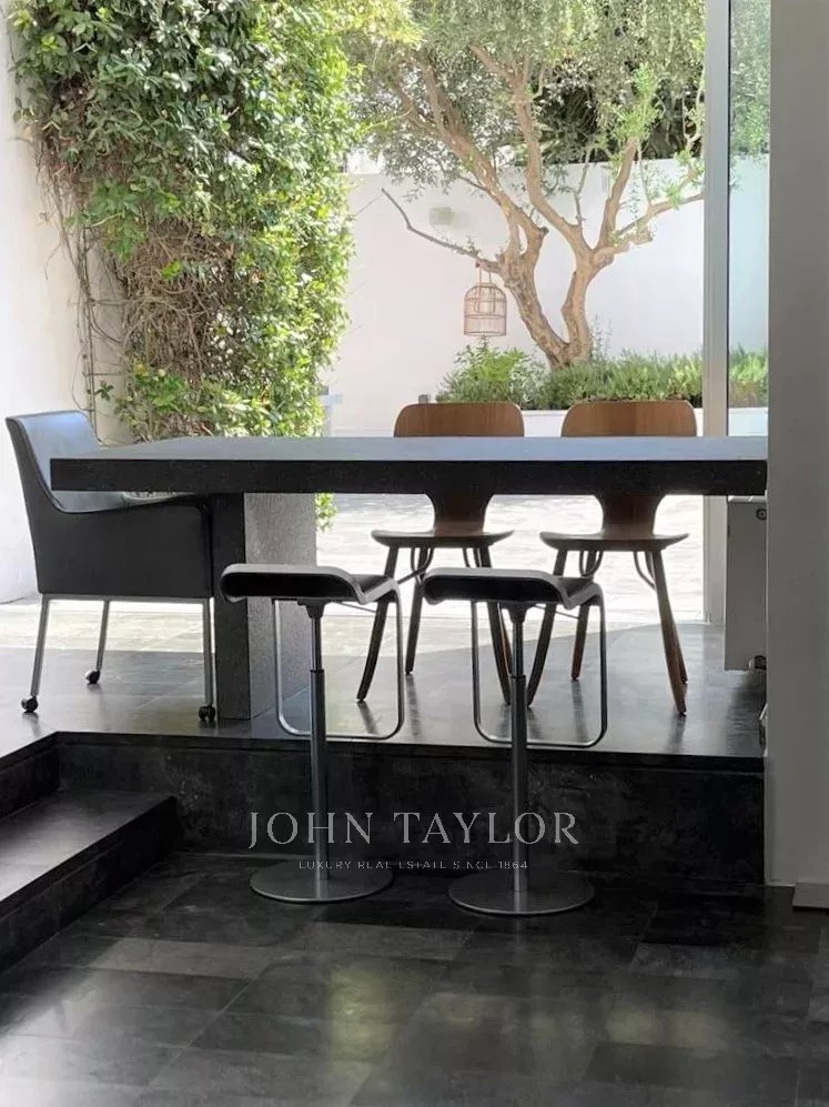 Dieses elegante Haus verfügt über fünf Schlafzimmer mit eigenem Bad, darunter eine geräumige Master-Suite, elegante Wohn- und Essbereiche sowie eine maßgeschneiderte Küche. Ein privater Innenhof mit Pergola und Tauchbecken bietet einen abgeschiedenen Rückzugsort im Freien, während zusätzliche Räume wie ein Büro und ein Gäste-/Spielzimmer den täglichen Komfort erhöhen.