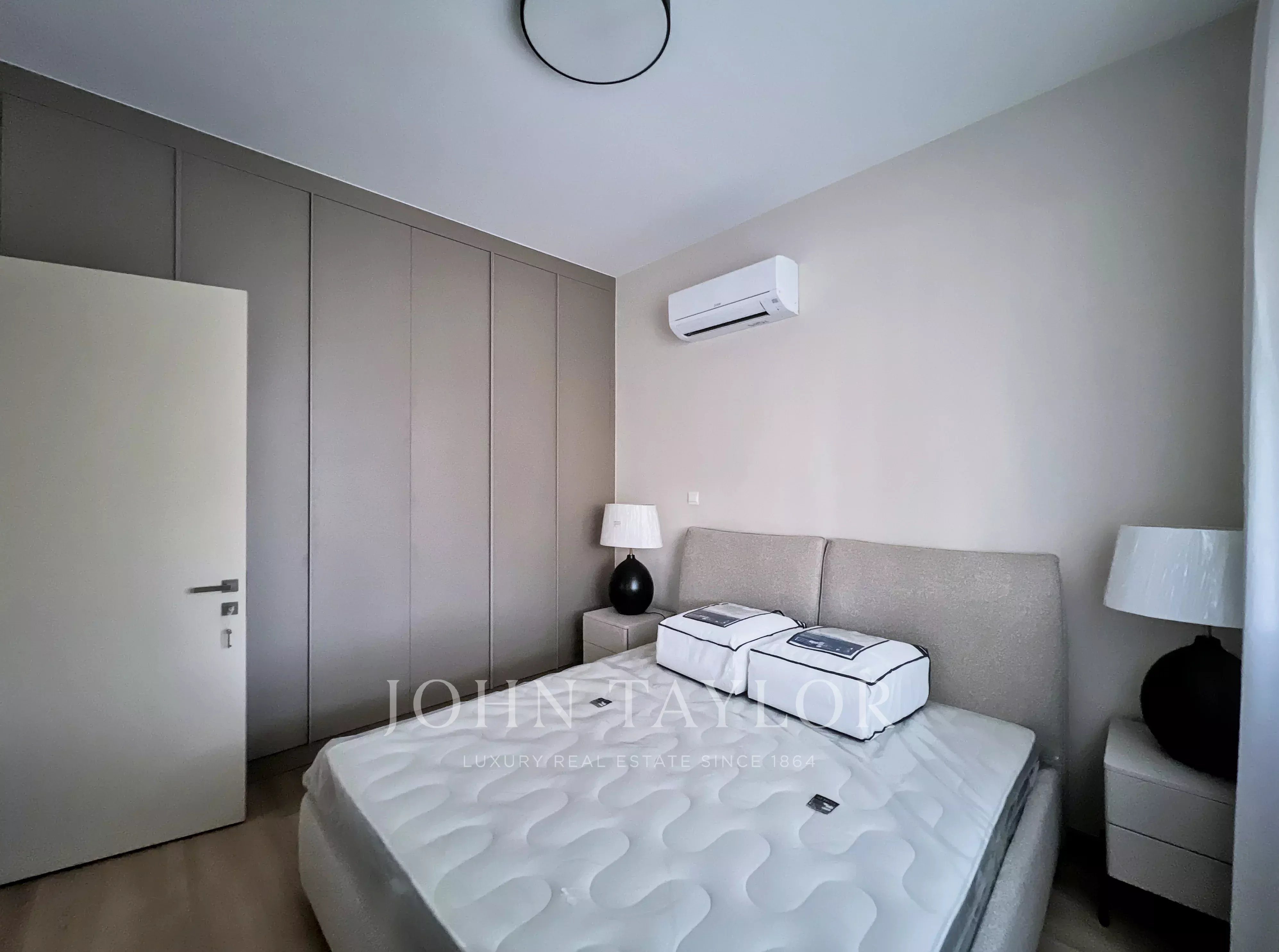 Teil einer modernen Wohnanlage mit Gemeinschaftspool, Sauna und gepflegten Außenanlagen.